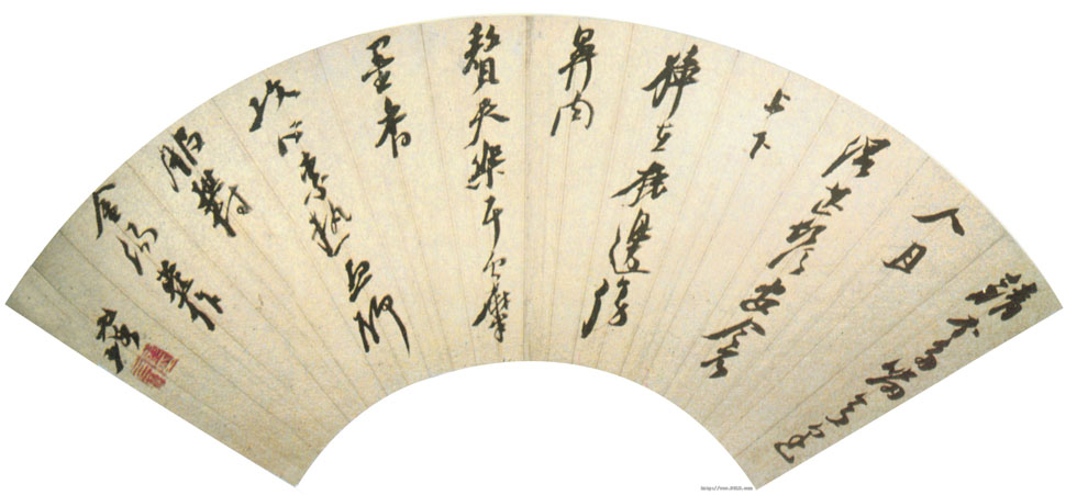 倪元璐《自书“请不多留意”五言诗扇面》 纸本行草 16.6×50.7cm 吉林省博物馆藏