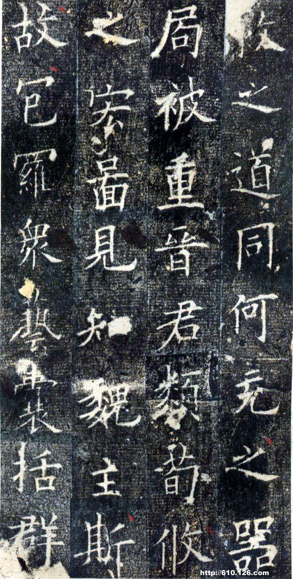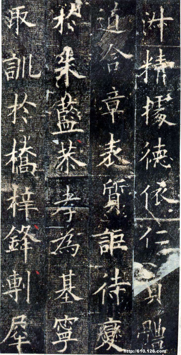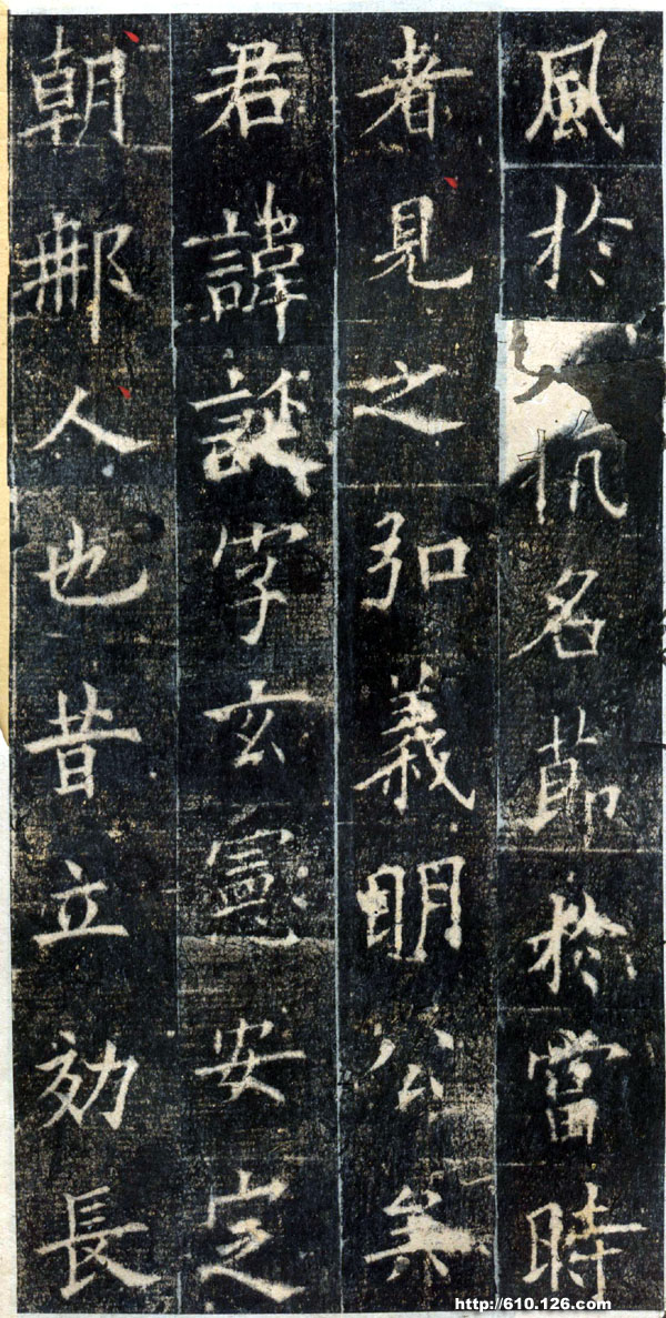 此碑书法用笔、结体及字形具有北齐风格,骨气劲峭,法度严整。明王世贞说:“率更书《皇甫君碑》,比之诸碑尤为险劲。是伊家兰台发源,然兰台《道因碑》,笔笔带批(隶法),得之家学也。”