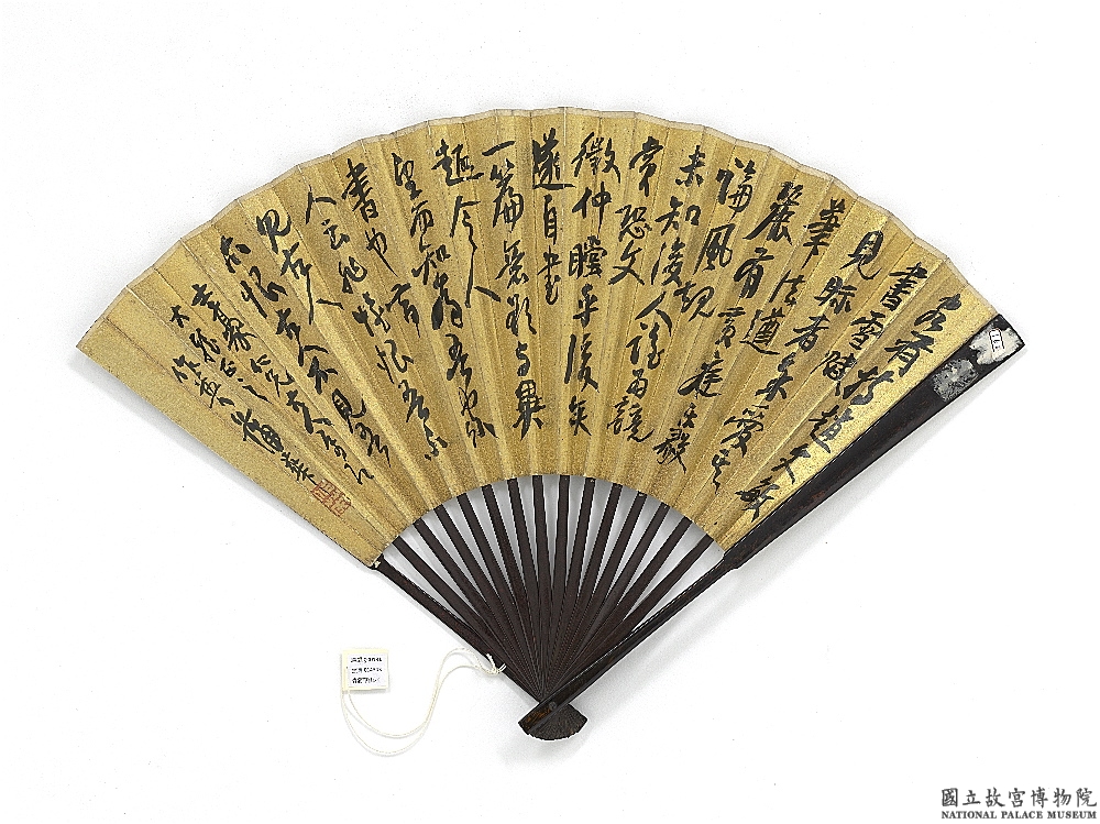 蒲华《溪山春意图并行书画禅室随笔扇》金笺行书 17.8×44cm 台北故宫博物院藏