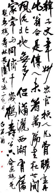 释文:韩子文章妙众官,换人凡骨胜金丹。此翁合是传人未?著万篇书在世间。风流北地无多侣,潇洒西湖有旧家。常与同侪千岁鹤,寿公只合画梅花。题春梅寿林长庐先生二绝句 白石翁