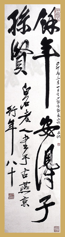 “余年安得子孙贤”,作于1939年,这是写第七幅同样内容的作品,送其后人“良止(芷)”收藏,是其晚年的行法佳作。 资料来自湖南省博物馆网站