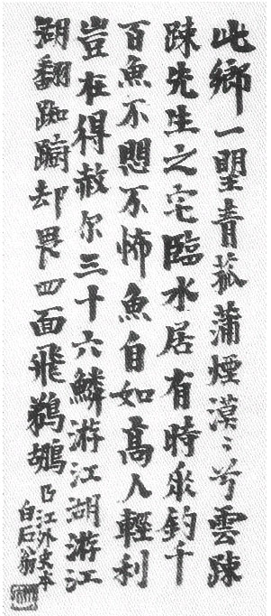 齐白石的一生是学习和创造的光辉一生。他与他所崇拜的前辈艺术大师吴昌硕一样,同样是“大器晚成”的典范又同样是传统修养全面,且在诗、书、画、印等艺术领域各有独特高深造诣和杰出贡献的巨子。综合的艺术才能互相滋养生发了老人的艺术,及至高年的勃发,把传统艺术推向了一片新天地。在学习和创造的过程中,老人自然经受了异常的大是大非与大美大丑的心灵裂变与痛苦求索,终于冲破了层层僵化的模式与陈陈相因的陋习,象一尾“透网之鳞”,奇尽了鱼龙变化,开拓出全新的美学境界。当然,我们既要看到齐白石艺术的不同门类之间的必然联系,也要具体分析老人在各个领域所进行的不 同探寻与努力,才可能进一步揭示其艺术的内蕴与审美价值。