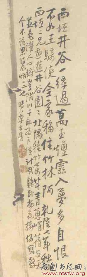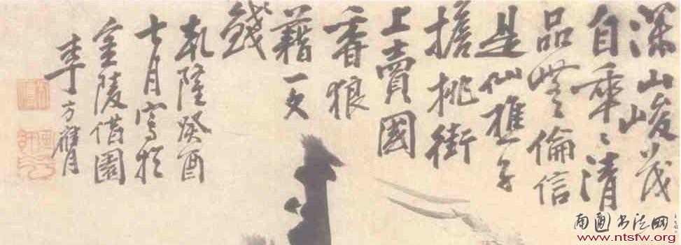 另一个重要人物便是方膺的好友丁有煜。有煜为通州名画家,且与李鱓、黄慎、金农、郑板桥等人都有来往,自己亦精篆刻,擅水墨画。丁有煜《哭晴江文》云:“李晴江少余十五岁,交余四十五年,秩然无紊雁序。”他比方膺大十五岁,在方膺的习画生涯中,应该给予了极大的影响。