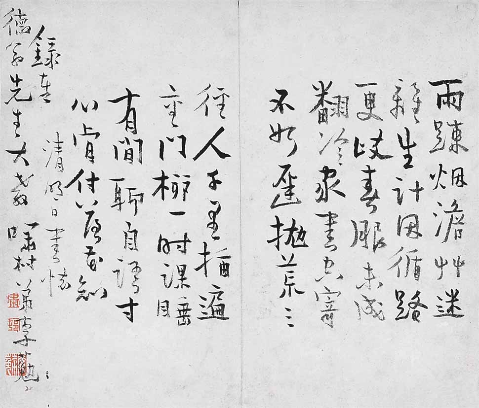 款识:清明日书怀,录奉德翁先生大教。啸村弟李葂。