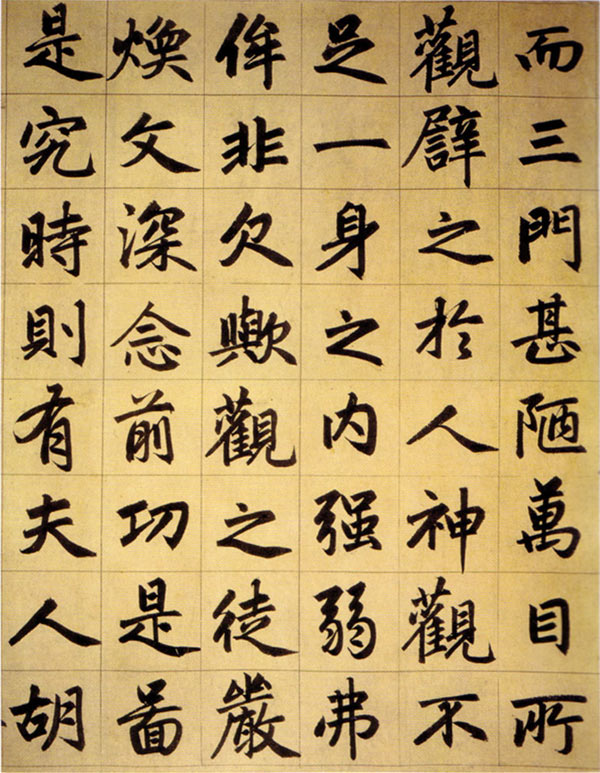 包世臣除了视禇遂良的书法为“花散金屏”以外,还形容他的书法为“遍体珠玉”,可见他对禇遂良书法所散发出的雍容华贵气息表示由衷地赞赏。在答黄修存问时说:“唐贤真书,以渤海为最整,河南为最暇,然其飞翔跳荡,不殊草势,筋摇骨转,奇掣玲珑,实有‘不草而使转纵横’之妙。凡以其用笔,较江左为直,而视后来犹甚曲之故也。”他认为禇遂良的楷书最“暇”,暇者,从容,悠闲。
