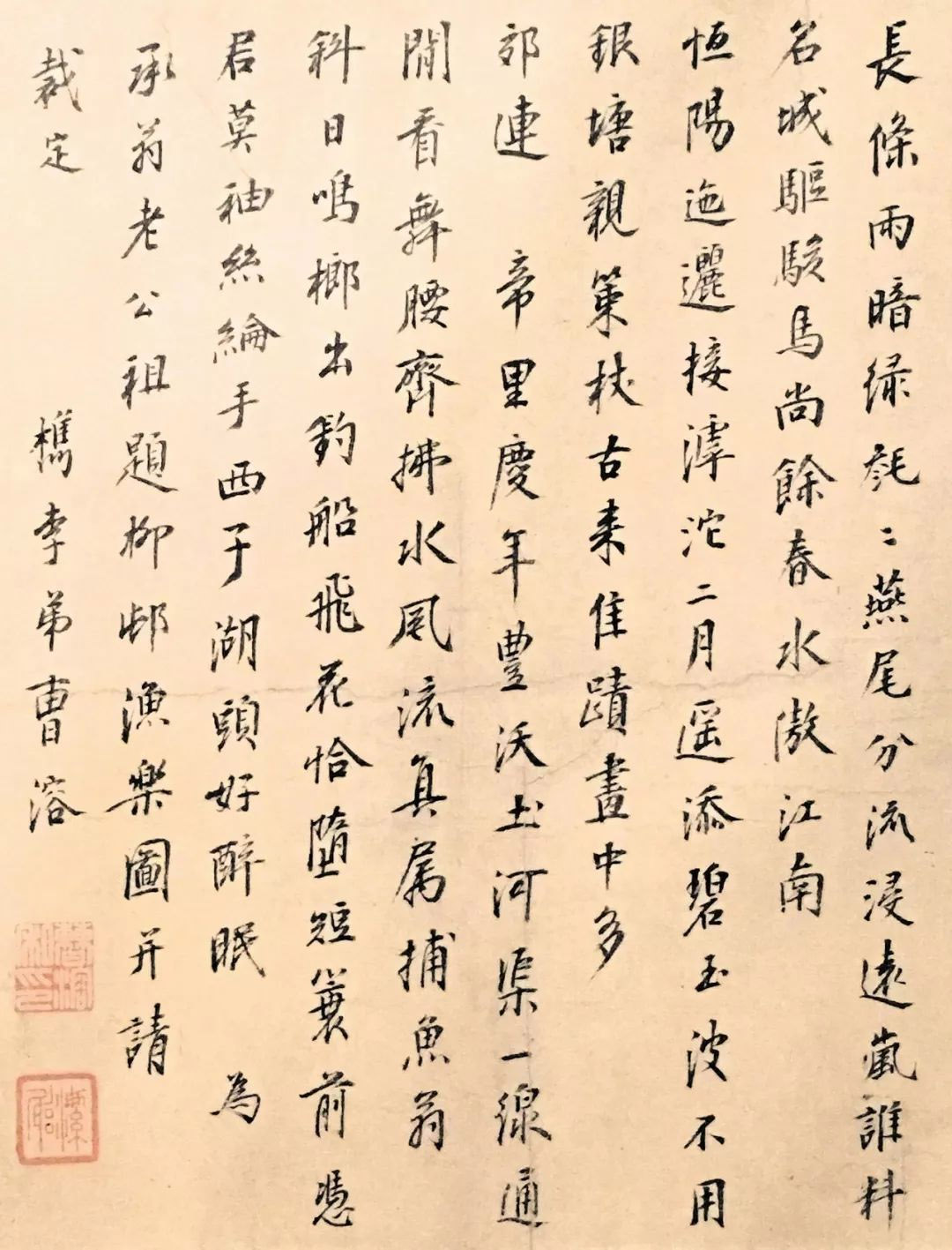 此札为题清樊圻《柳村渔乐图卷》,樊圻(1616-?),字会公,更字洽公,江宁(今江苏南京人)。其兄樊沂均以画出名。与龚贤、高岑、吴宏、叶欣、胡慥、谢荪、邹喆等人并称为"金陵八家"。从内容看恐为曹溶自作七言绝句诗四首,待查出处。 释文:(略)。 【资料来源】感谢老子故里人提供
