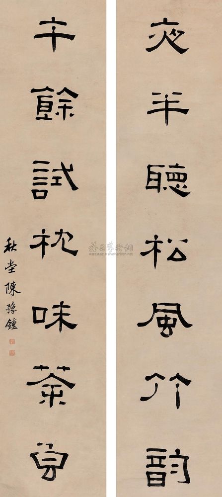 陈豫锺《隶书七言联》 169×36cm×2 北京保利 5周年春季拍卖会