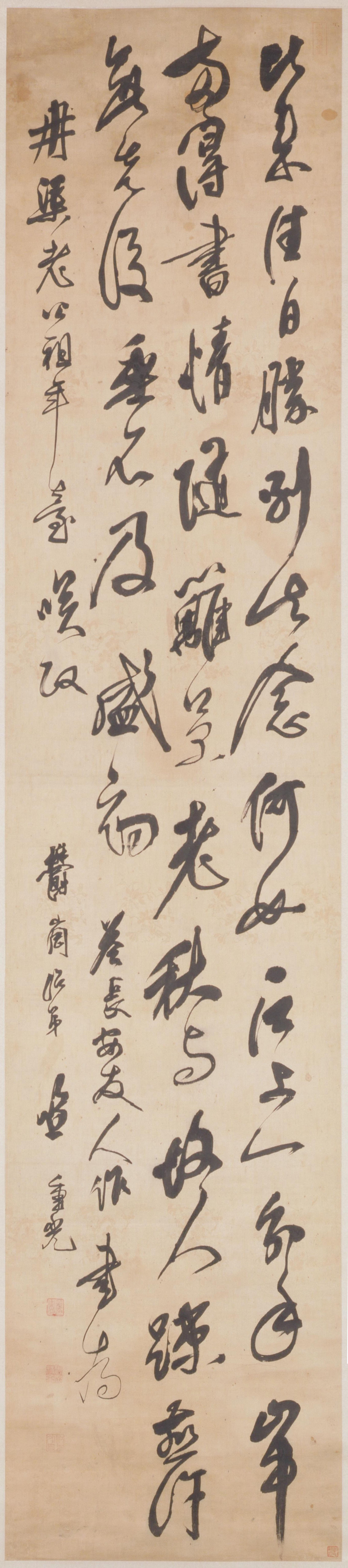 笪重光《答长安友人作五律一首》 纸本行草书,242.8×52.5cm 北京故宫博物院藏