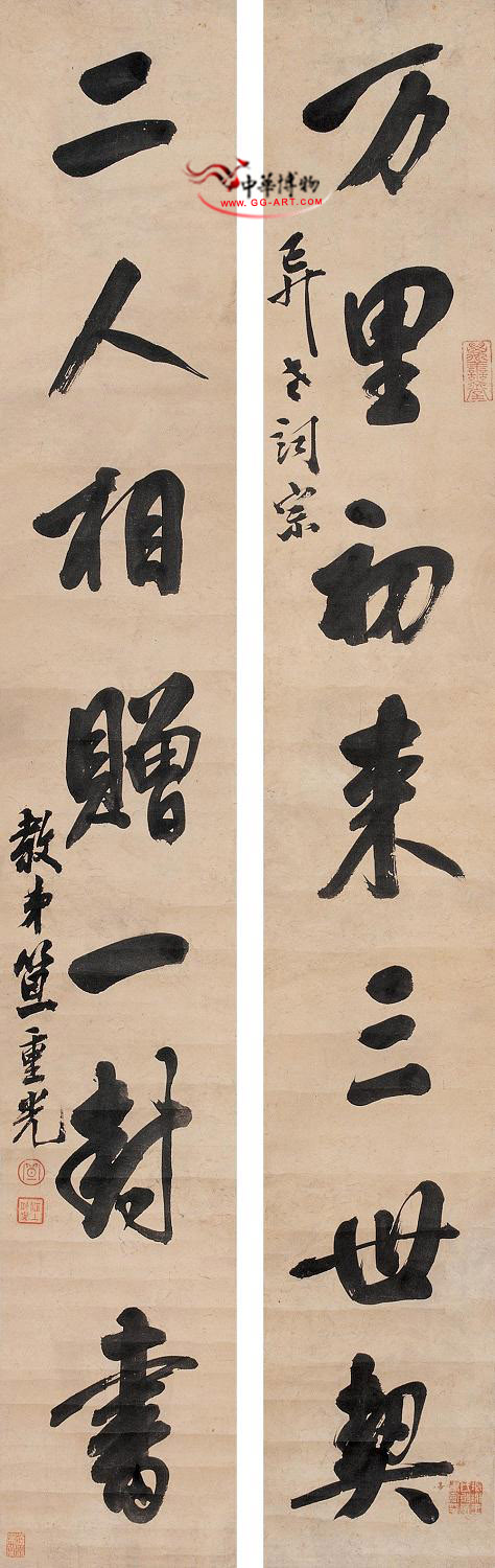 笪重光《行书七言联》 立轴 纸本 120×18厘米×2