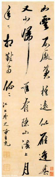 《自作七言诗轴》绢本行书 160.2×46.6cm 南京博物院藏