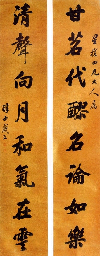 戴熙《行书七言联》 金笺,立轴 179×34cm×2