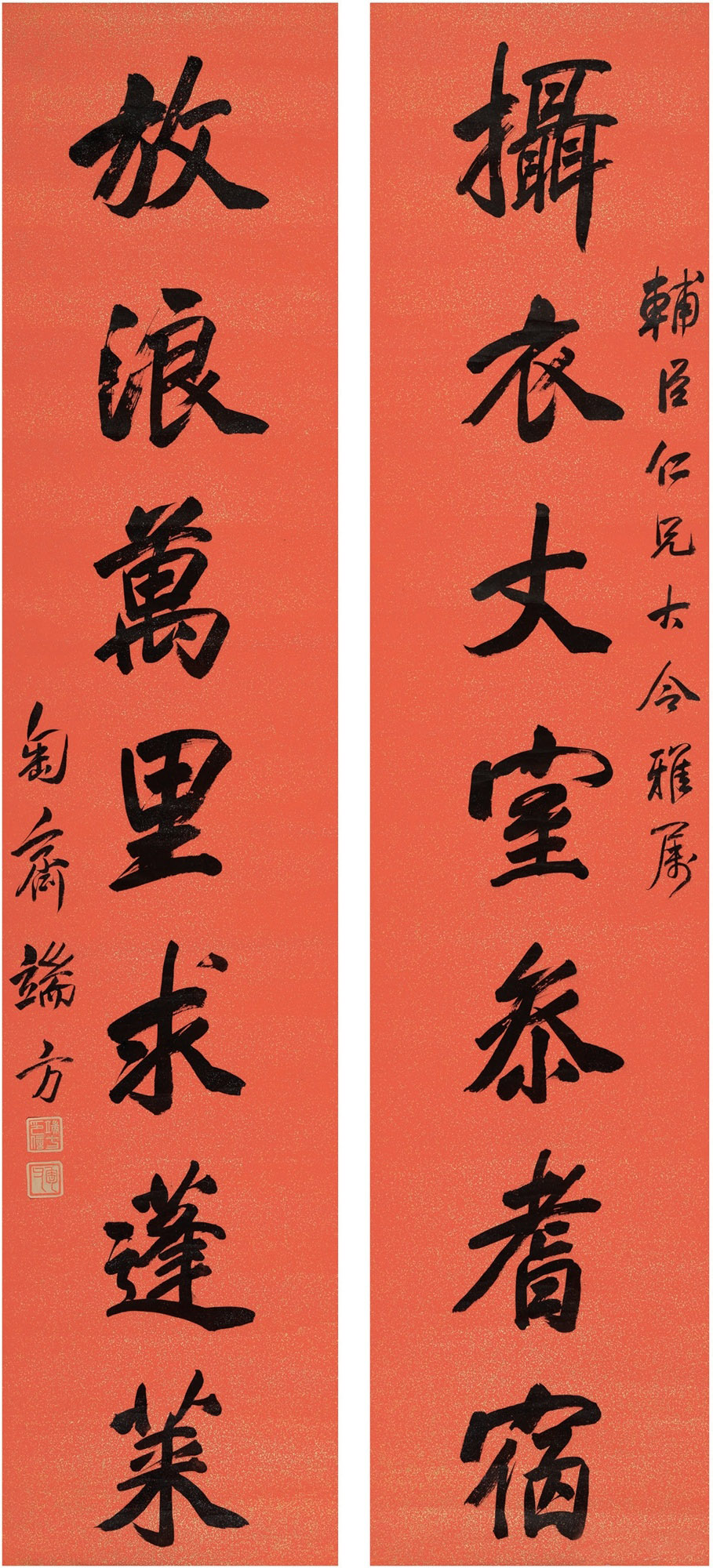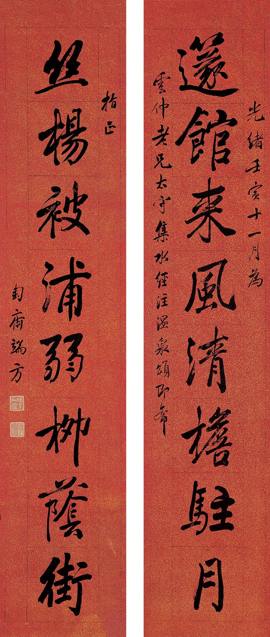 端方《行书八言联》 水墨纸本 196×39.5cm×2 光绪壬寅(1902年)作