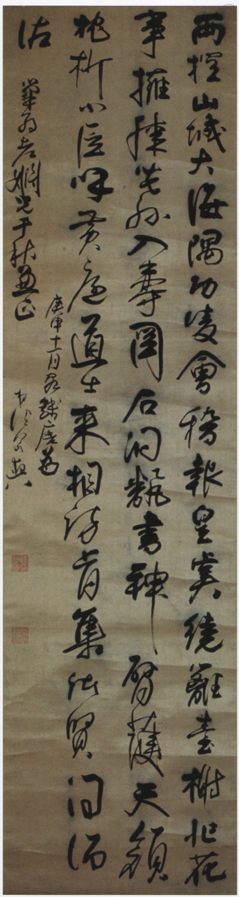 释文:两控山城大隅功凌会稽报皇虞 款署:庚申十一月客钱唐为巢翁老兄于秋兼正。弟法若真。