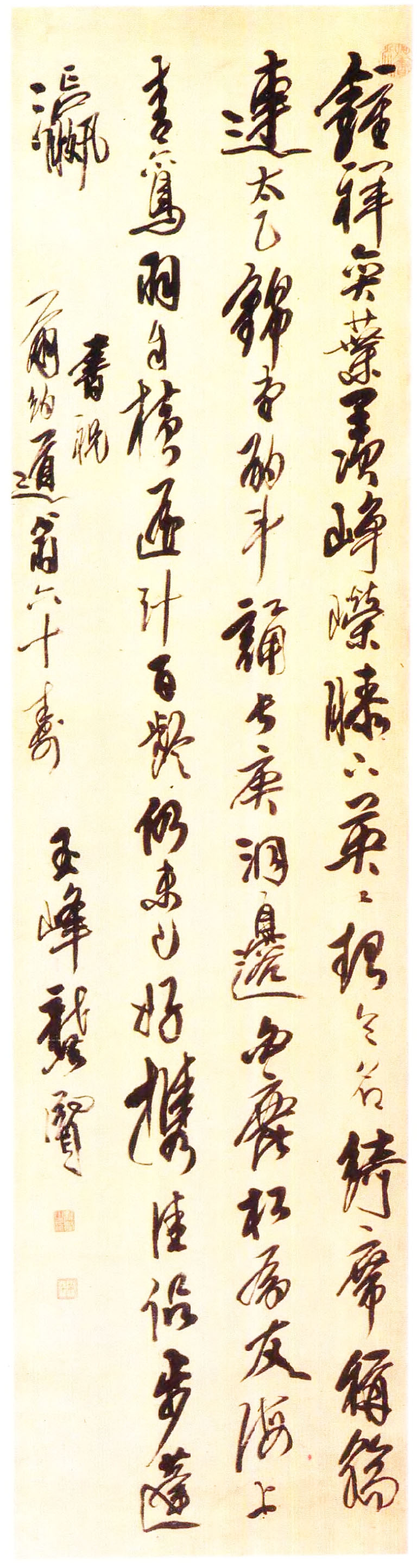 龚贤《祝尔约翁六十寿轴》 纸本行书 204.3×52.2cm 上海博物馆藏