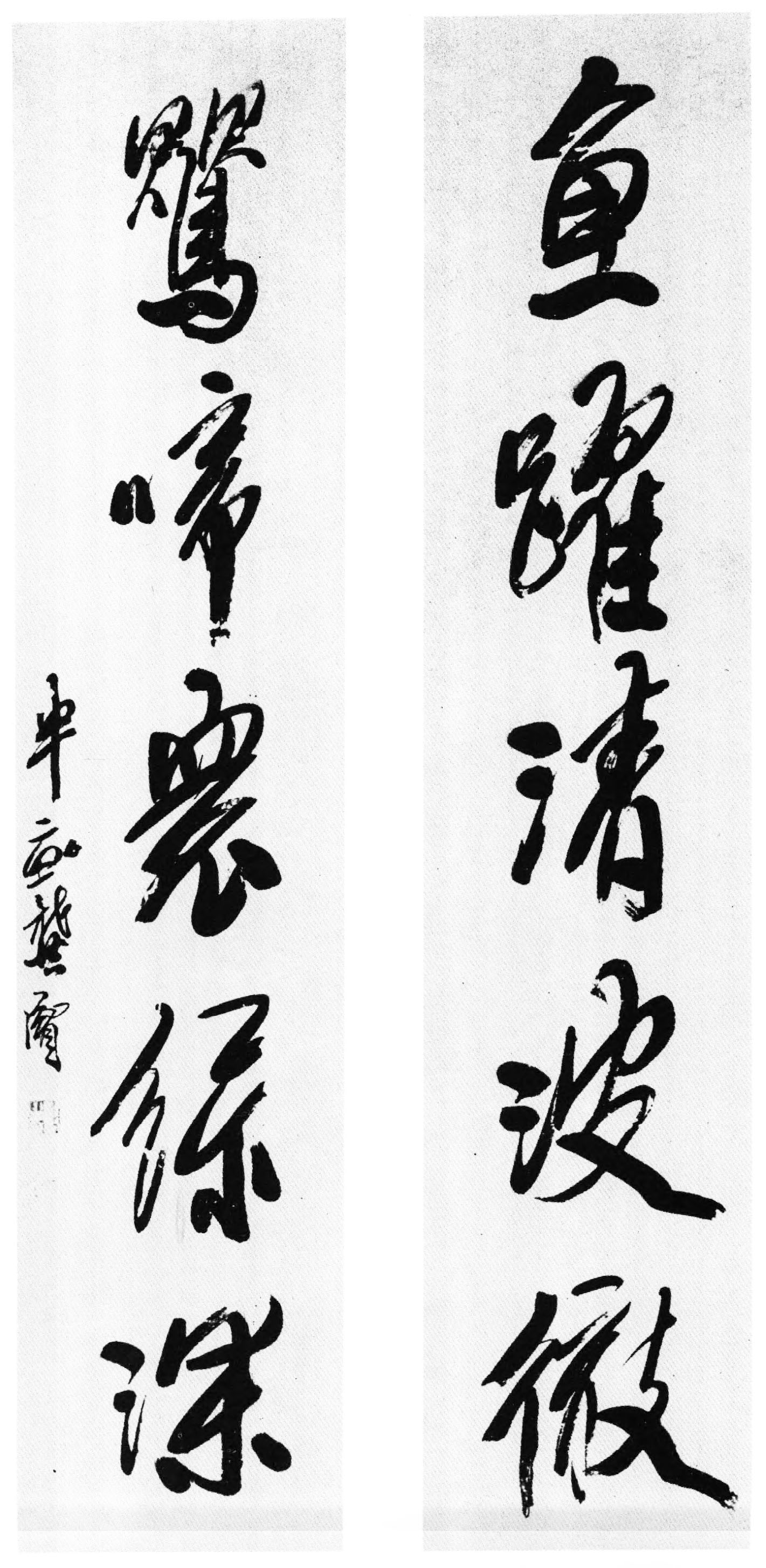 《行书“鱼跃莺啼”五言联》纸本行书 日本藏