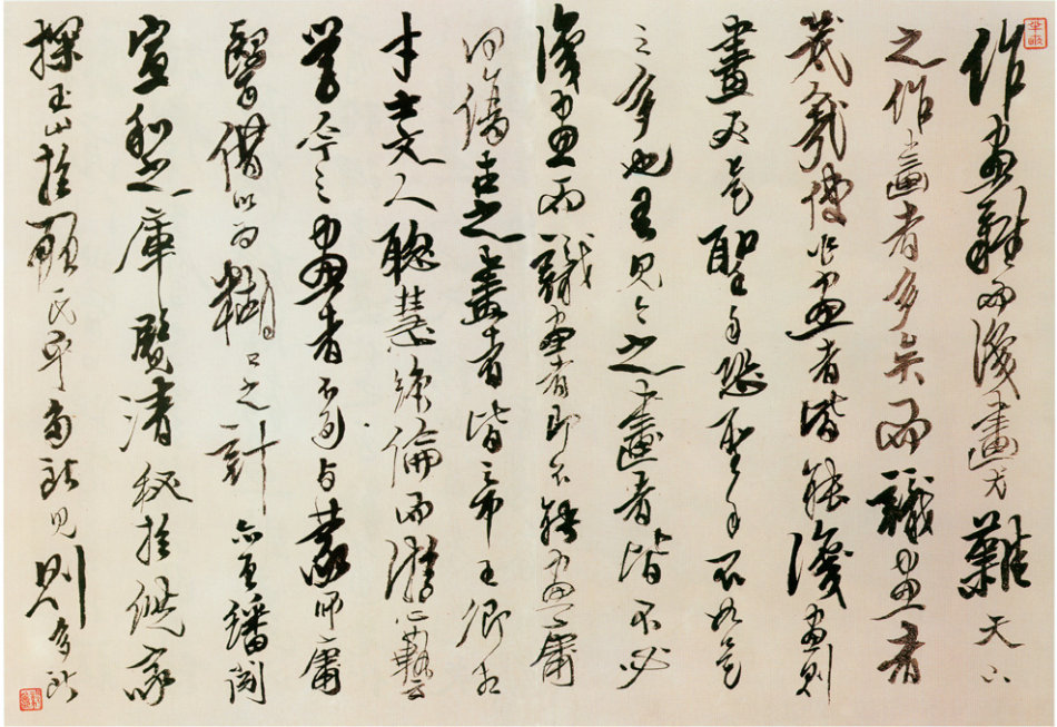 “遒劲是画家第一笔,练成,通于书矣。”“松叶若写楷,横点若写隶,半菊若写草,圆圈若写篆。”⒇
