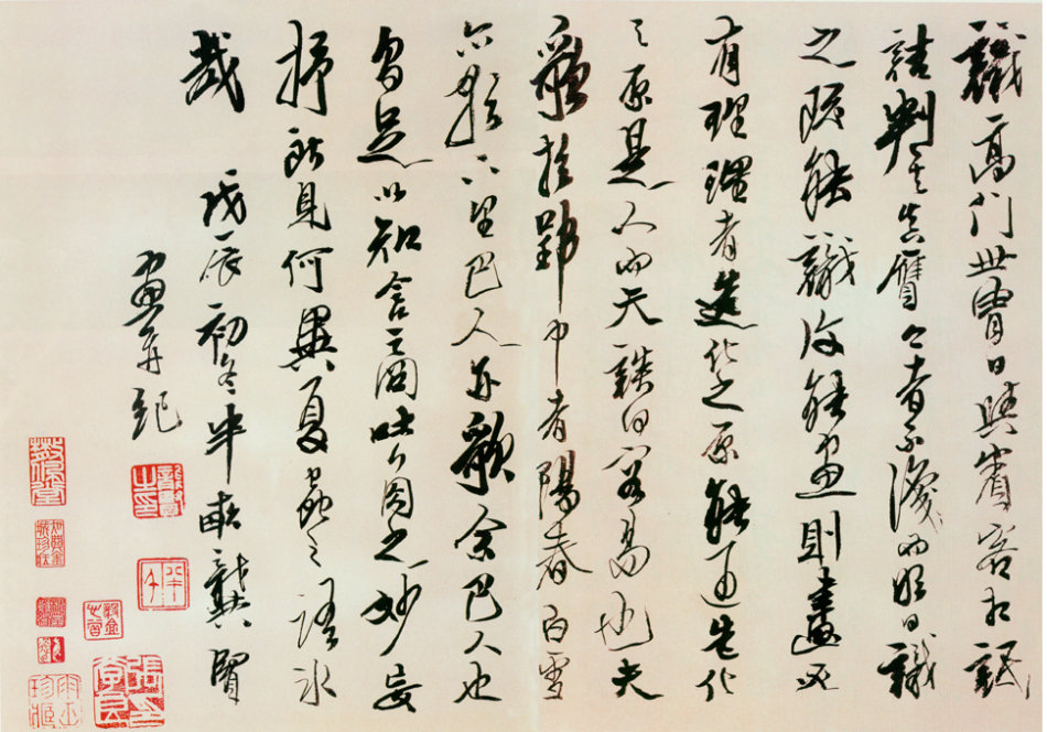 因而,王、颜、米、董(早期)→王字、李邕(中期)→米书(晚期),即为龚贤书法师承之大体轮廓。