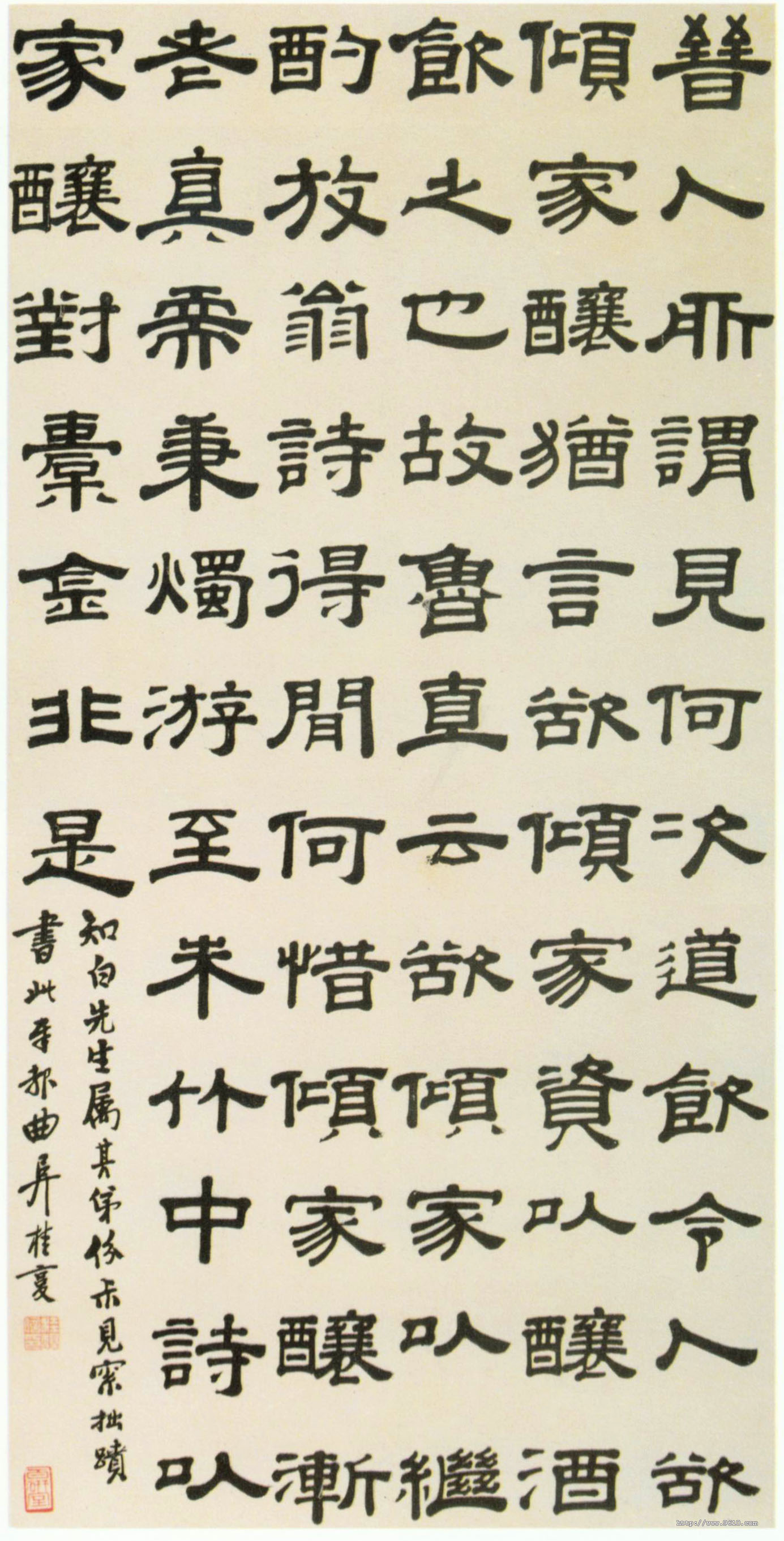 释文:晋人所谓见何次道,令人欲倾家酿,犹言欲倾竭家货以酿酒饮之也。故鲁直云:“欲倾家以继酌。” 放翁诗:“得闲何惜倾家酿,渐老真需秉烛游。”至朱竹中诗以家酿对橐金,非是。 款署:知白先生属其弟份叔,见索拙迹,书此奉报。曲阜桂馥。 钤印:桂馥信印(白文) 【资料来源】《中国美术全集》书法篆刻编-6-清代书法(可嘉提供)