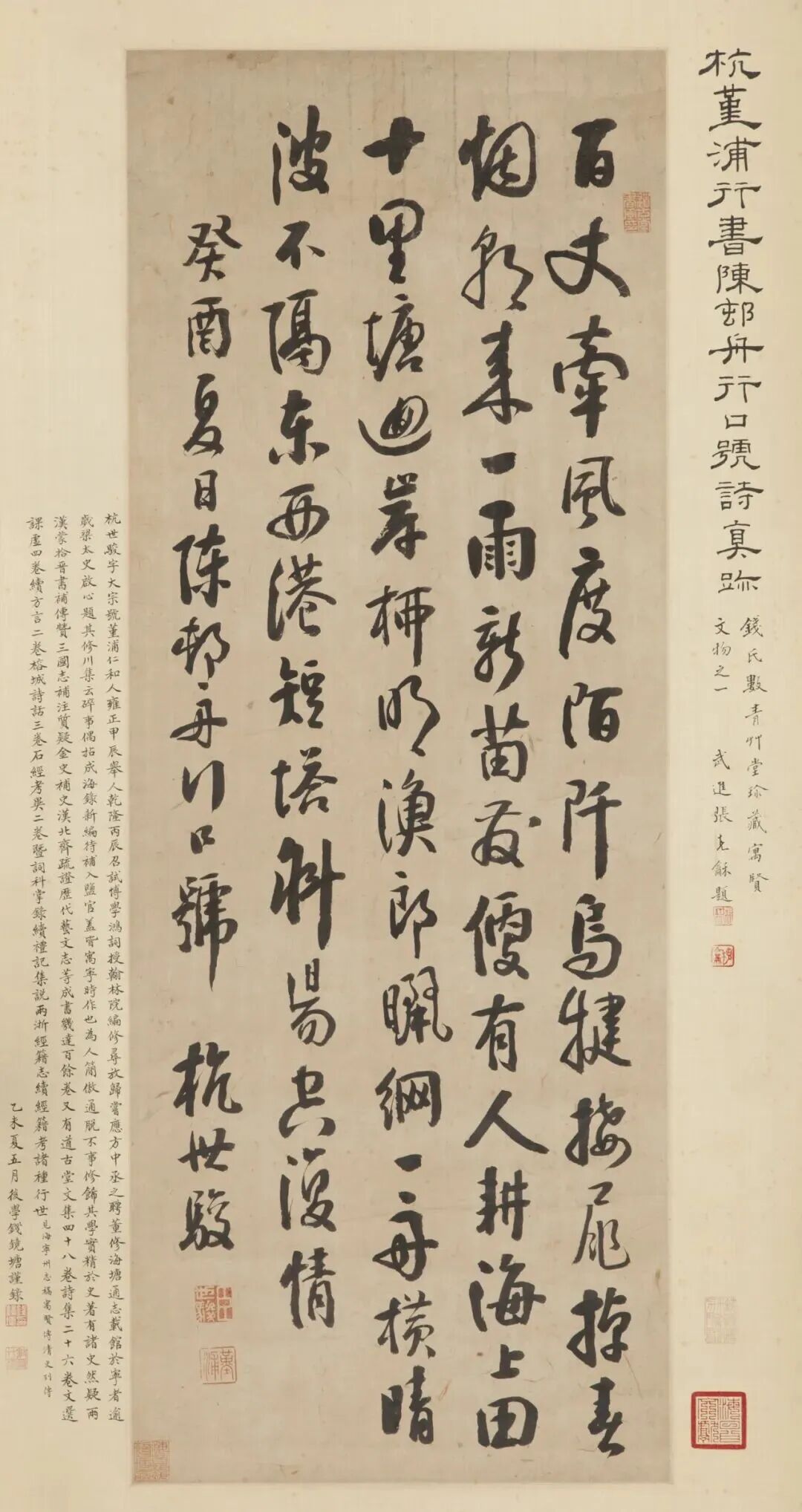 杭世骏 《行书陈村舟行口号诗轴》 96.1cm×36.2cm 1753年 浙江省博物馆藏