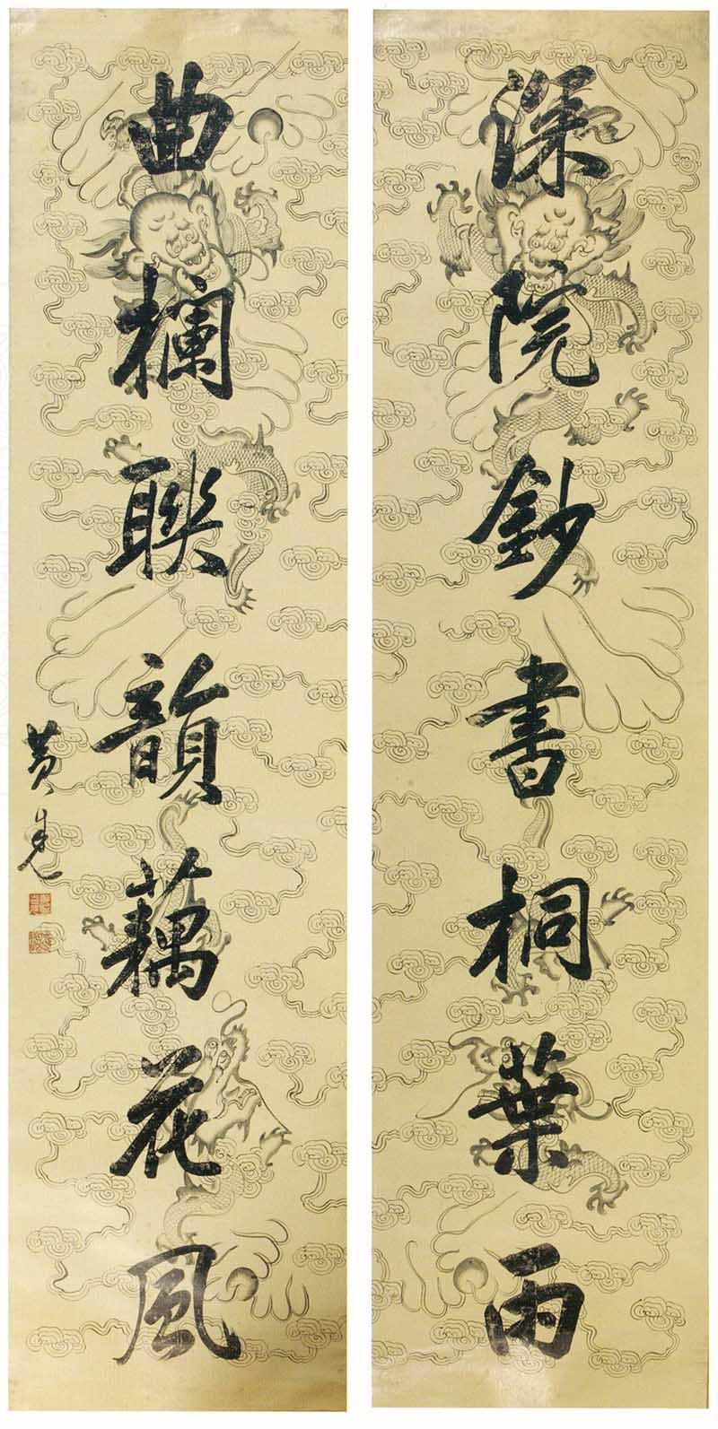 黄自元《行书“深院曲栏”七言联》 134×33cm×2 首都图书馆藏