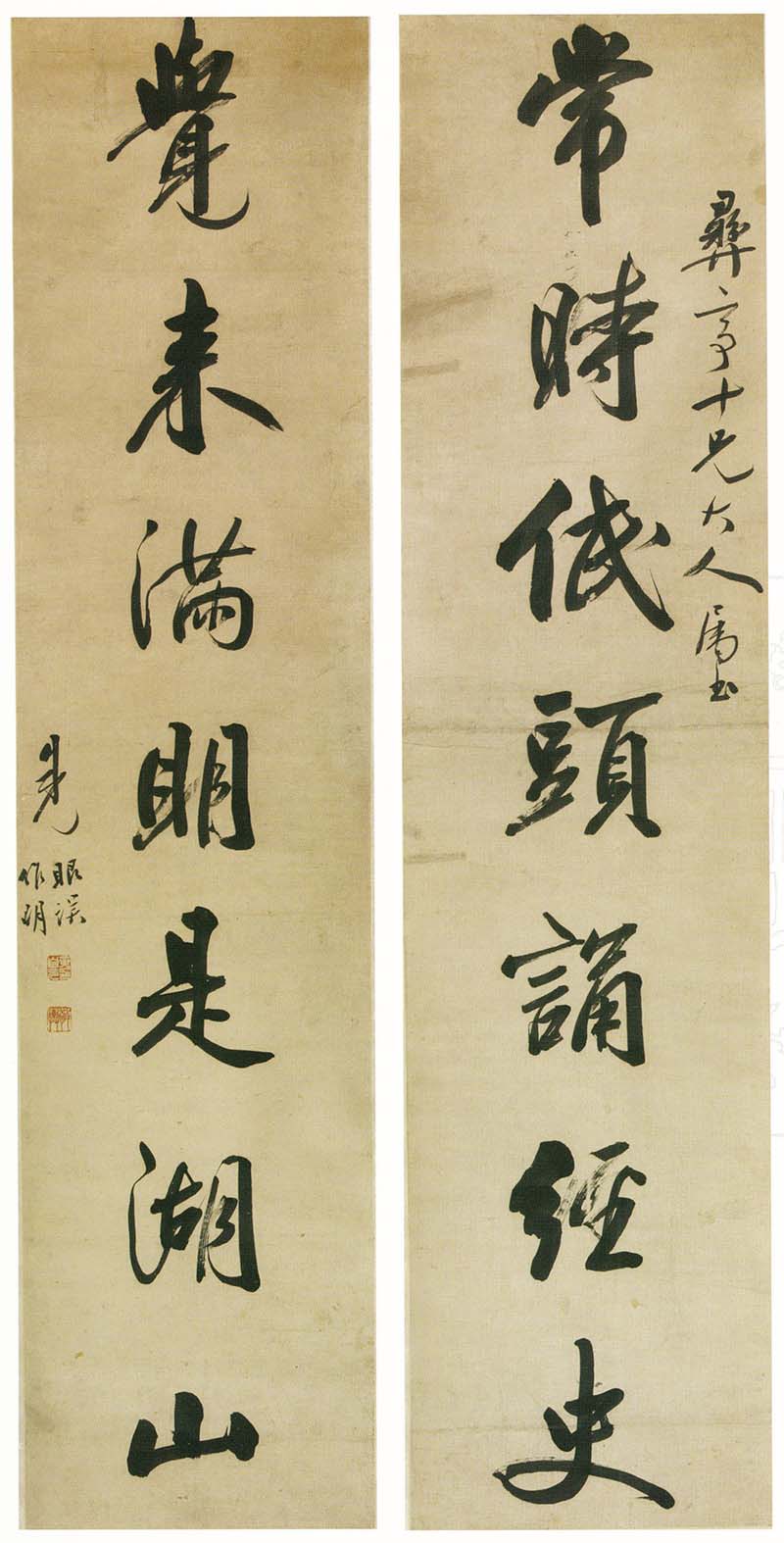 此联结构严谨,斩钉截铁,挺拔有力,刚健舒展,工整美观。下联中“明”字乃“眼”字之误。