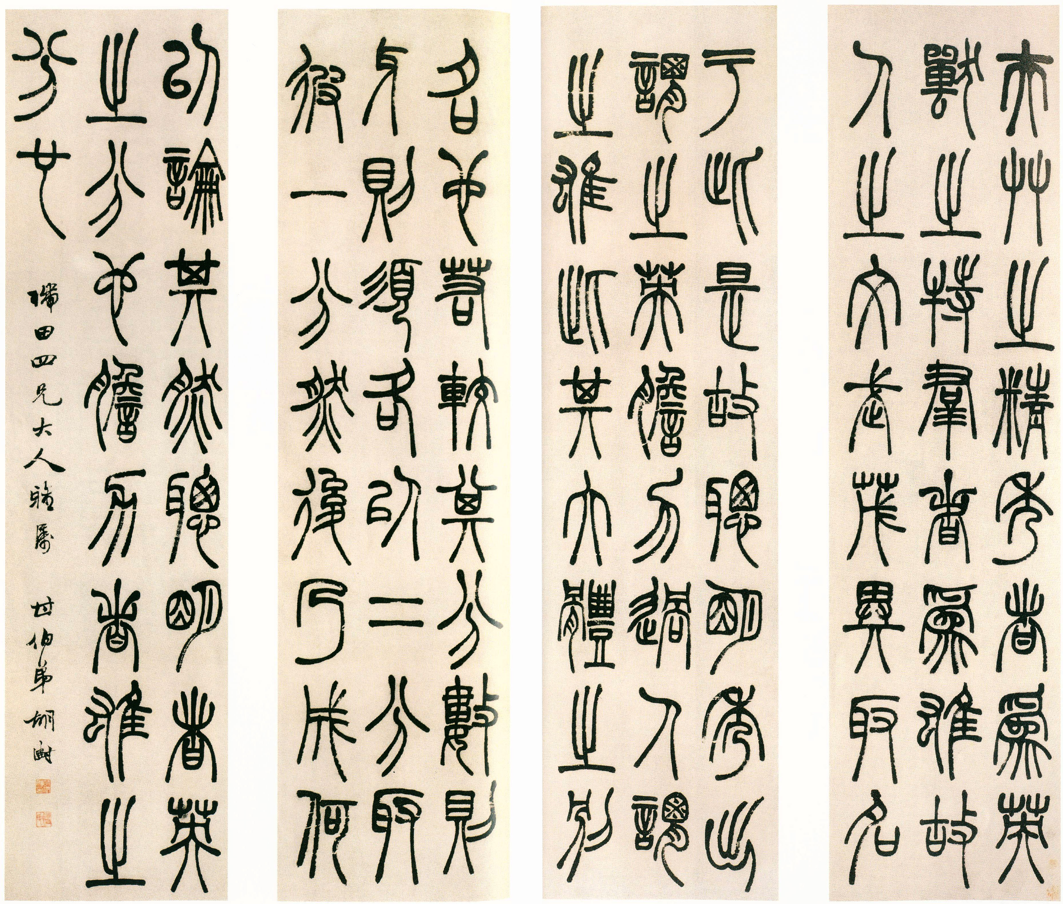 胡澍《篆书节录人物志英雄篇四条屏》纸本 篆书 143.2×36.6cm×4 小莽苍苍斋藏