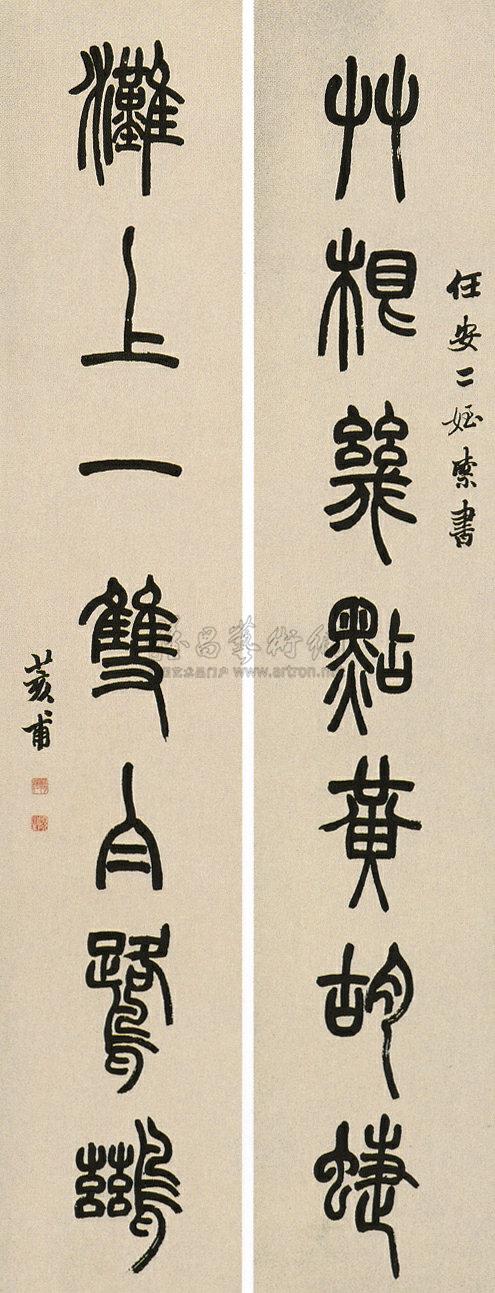 胡澍《篆书草根滩上七言联》水墨纸本 128.5×25cm×2 中国嘉德1998秋拍