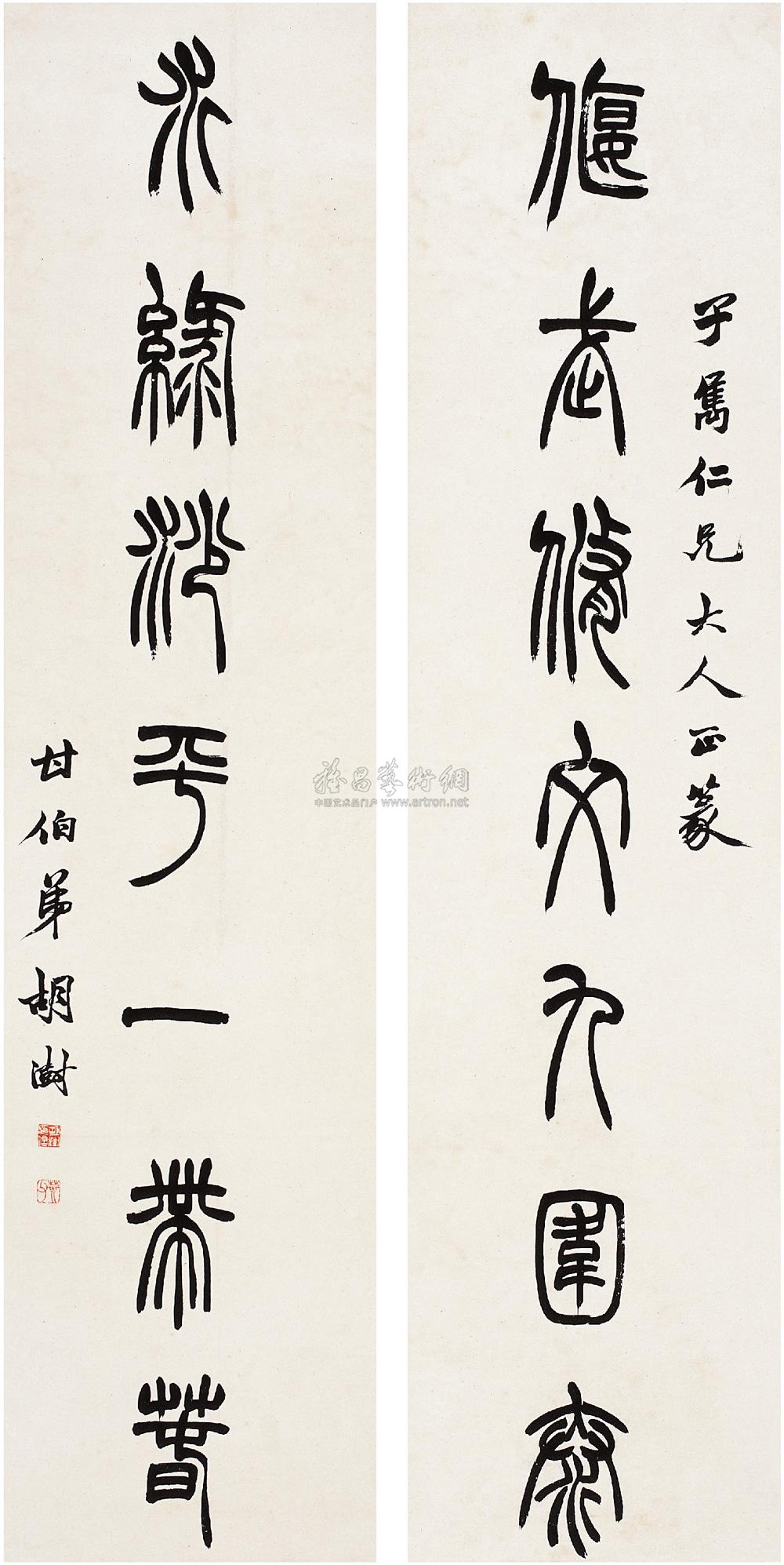 胡澍 《篆书偃武水绿七言联》纸本 126.5×30.5cm×2 西泠拍卖2008年春季拍卖会