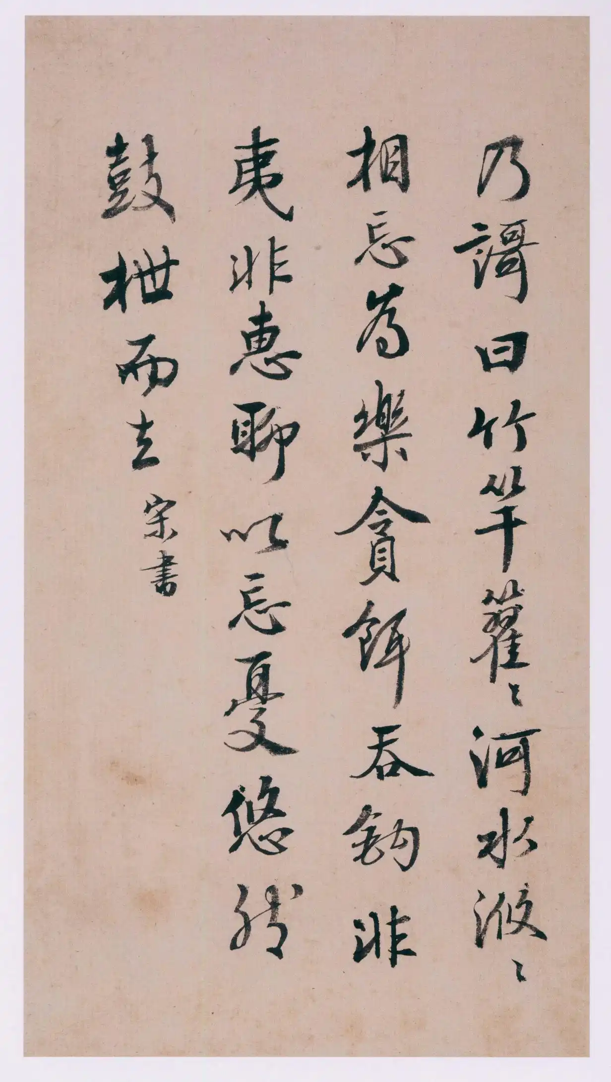 乃歌曰:“竹竿籊籊,河水浟浟,相忘为乐,贪饵呑钩。非夷非恵,聊以忘忧。”悠然鼓枻而去。《宋书》
