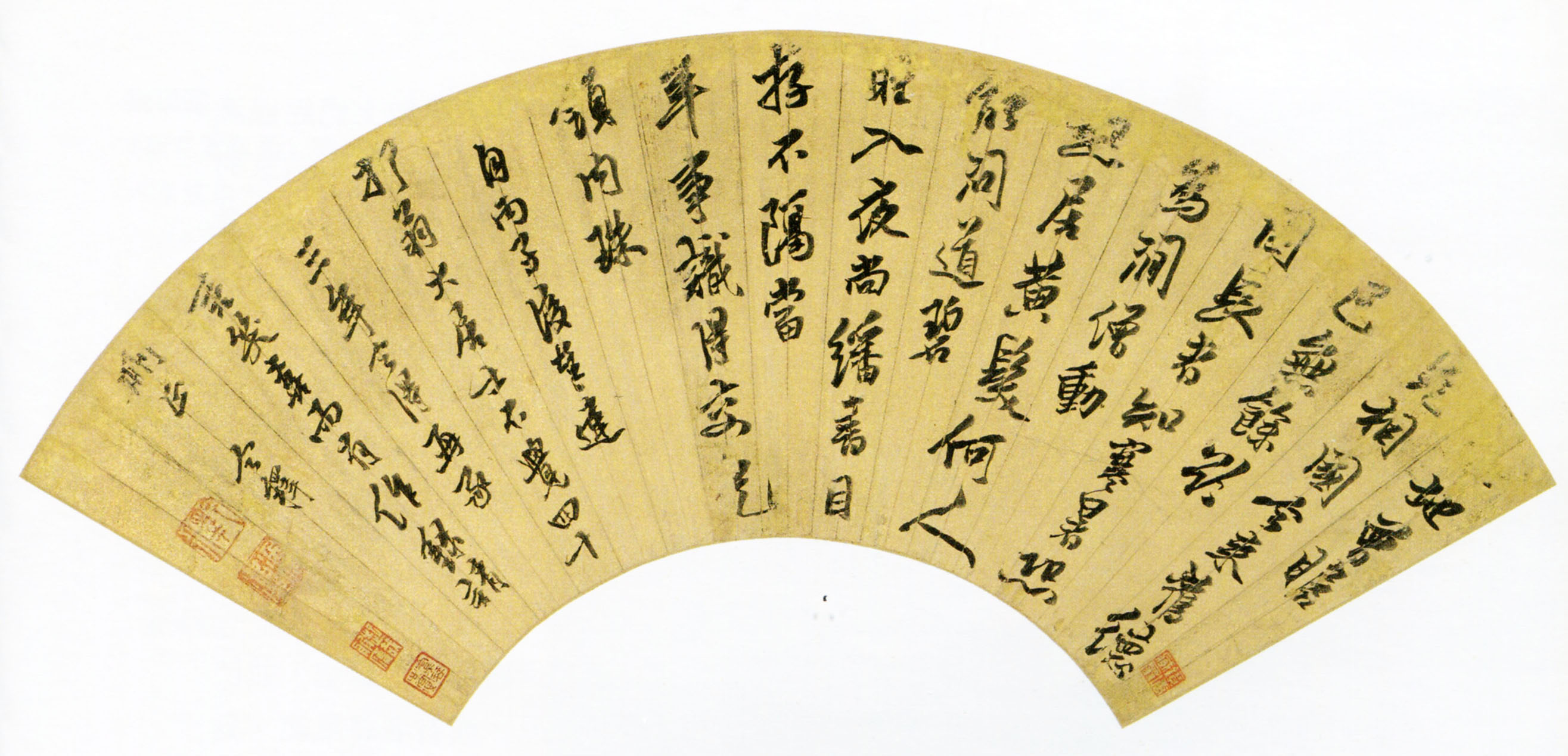 释今释《行书再承朽翁言笑诗扇》金笺行书 16.1×50.7cm 1679年 上海博物馆藏