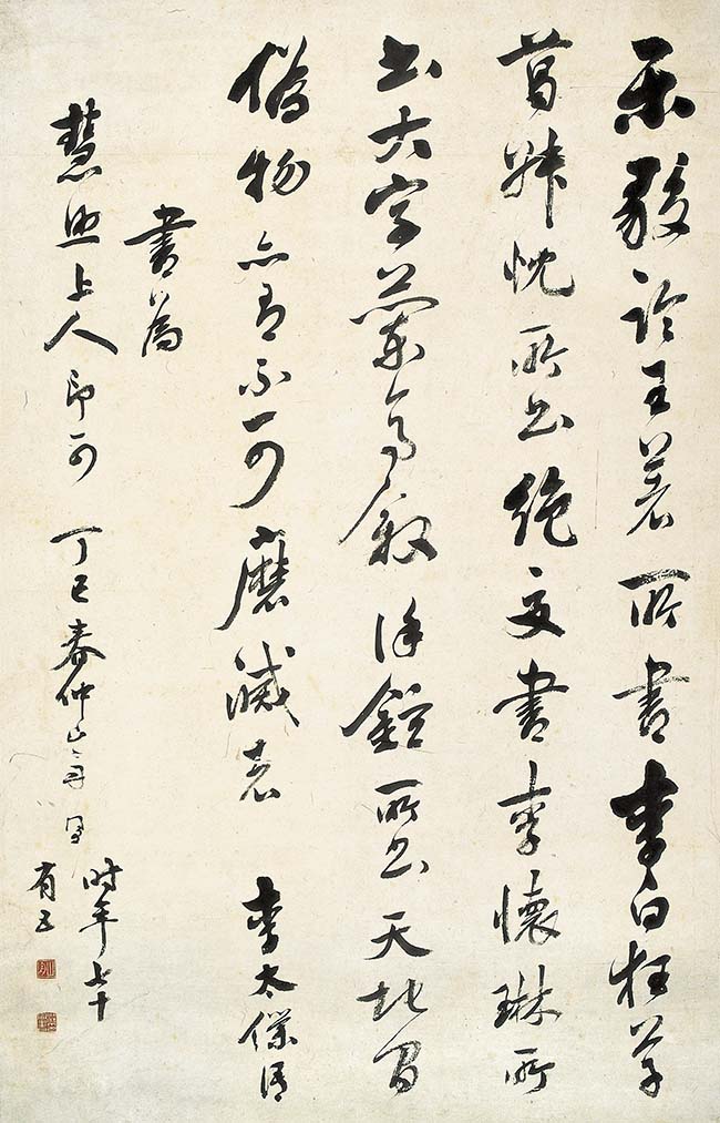 款署:李太仆语,书为慧照上人印可。丁巳春仲,山舟同书,时年七十有五。