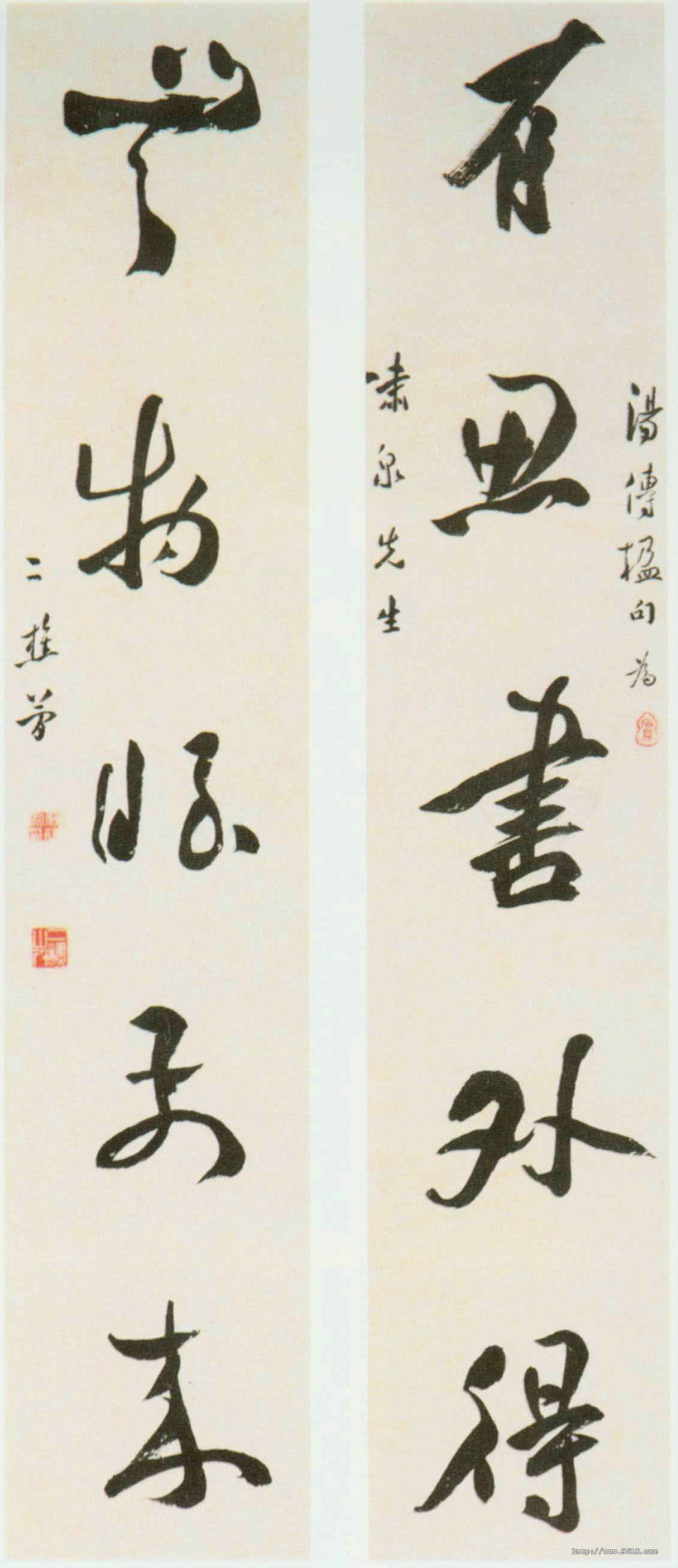 释文:有思书外得,无物眼前来。 款署:汤传楹句,为啸泉先生。二樵简