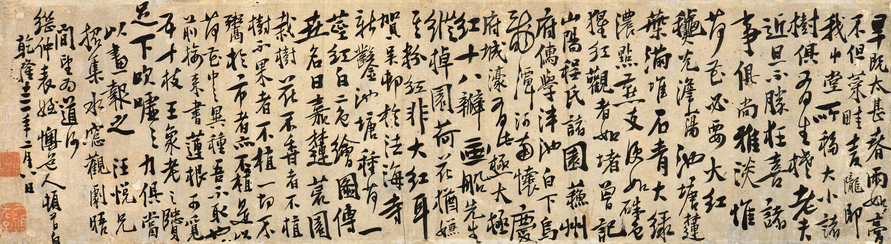 李鱓《行书致继仲表姪横幅》纸本行书 22×80cm 1748年 南京博物院藏
