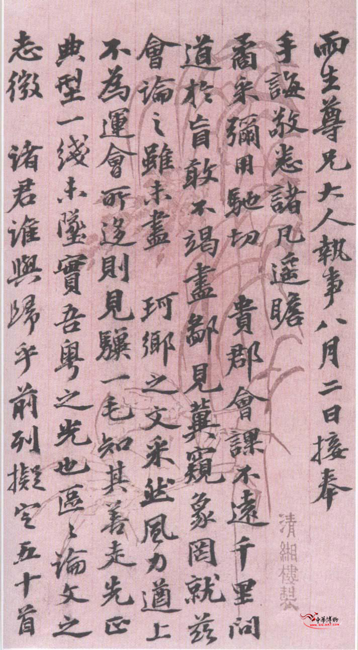 雨生尊兄大人执事:八月二日接奉手诲,敬悉诸凡,遥瞻矞采,弥用驰切。贵郡会课,不远千里问道於盲,敢不竭尽鄙见,冀窥象罔。就兹会论之,虽未尽珂乡之文采,然风力遒上,不为运会所移,则见骥一毛,知其善走,先正典型,一线未坠,实吾粤之光也。区区论文之志,微诸君,谁与归乎?前列拟定五十首,若欲再广,则百名次第已暗记於每卷之背,以花押志之,会中翘楚之材,似皆入吾彀中矣。八比风尚至今日而日趋於靡,不意中流砥柱,尚在天南,惊喜久之。暗中摸索,必不误认颜标,质之我公与玉臣太史,或期抚掌也。自前十年兰山一别,至今未接麈教,九月后海风不啸,拟访戴数日即返,此间书院功课不免劳人故耳。老母以下均托福芘,小儿乳食尚足,颇有豚犬之观,足慰长者之怀。专启敬复。叩请
