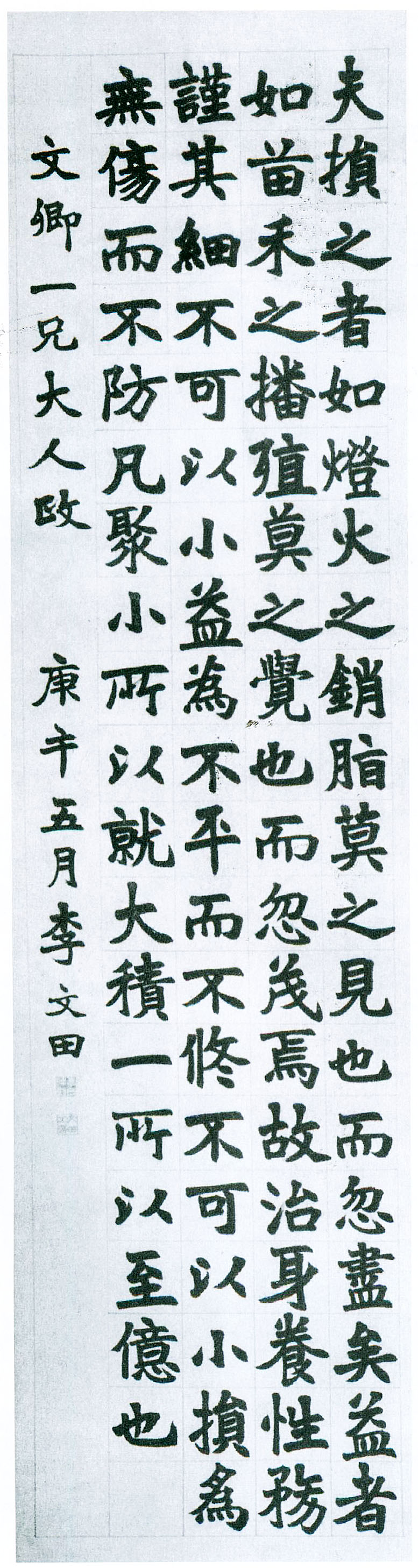 李文田《赠文卿楷书轴》纸本 185×48.3cm 日本东京知长印社藏