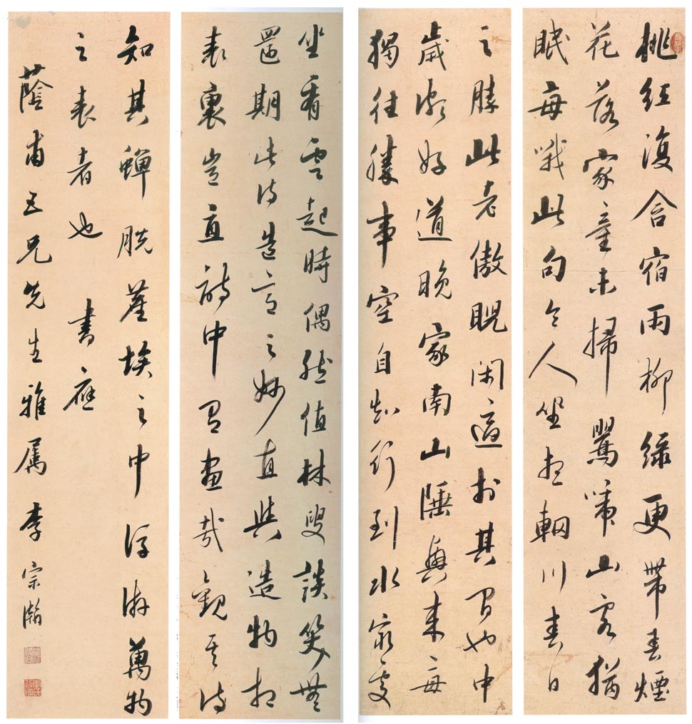 李宗瀚《行书四条屏》洒金笺行书 120.8×27.7cm×4 上海博物馆 藏