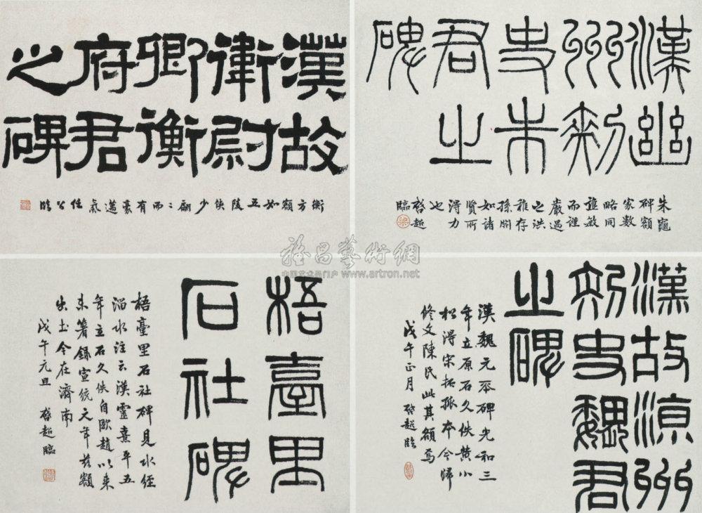 梁启超《临汉碑碑额》册页(选页) 32.5×44.5cm×25 北京瀚海1998年春季拍卖会 钤印:梁启超、饮冰室、任公、双涛旧主