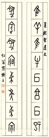 今人写甲骨书法的作者,多是在前人成果的基础上进行,有的甚至是抄写前人的成句。在罗振玉生活的时代,则没有这么多便利条件,一切均须从头做起,因此,早期的甲骨文书法家多是兼具学者身份。