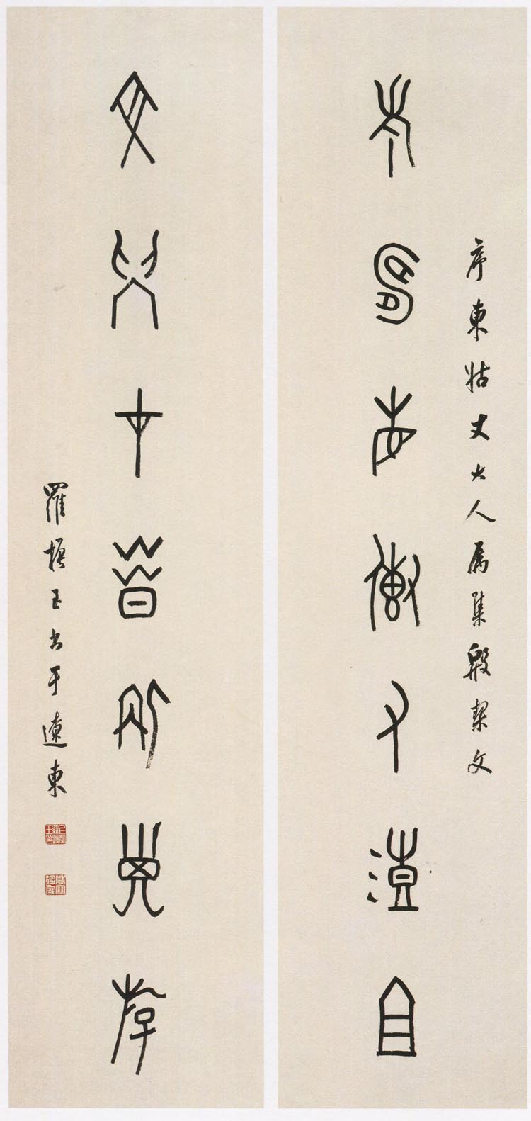 罗振玉《甲骨文老寿文学七言联》纸本 130.7×32.7cm×2 浙江省博物馆藏