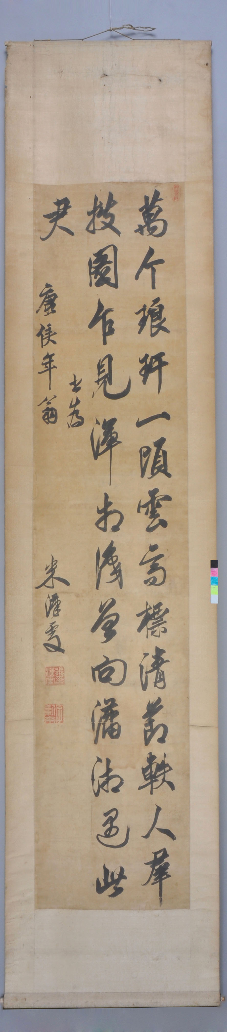 清 米汉雯《行书七律诗轴》绢本行书 216×63.8cm 天津博物馆藏