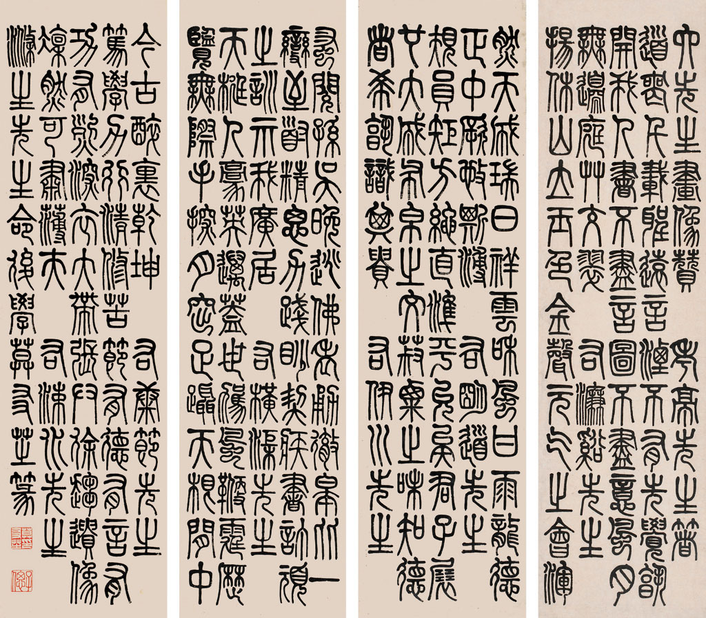 莫友芝《篆书六先生画像赞》纸本篆书 162×44cm×4 保利国际拍卖十周年秋拍