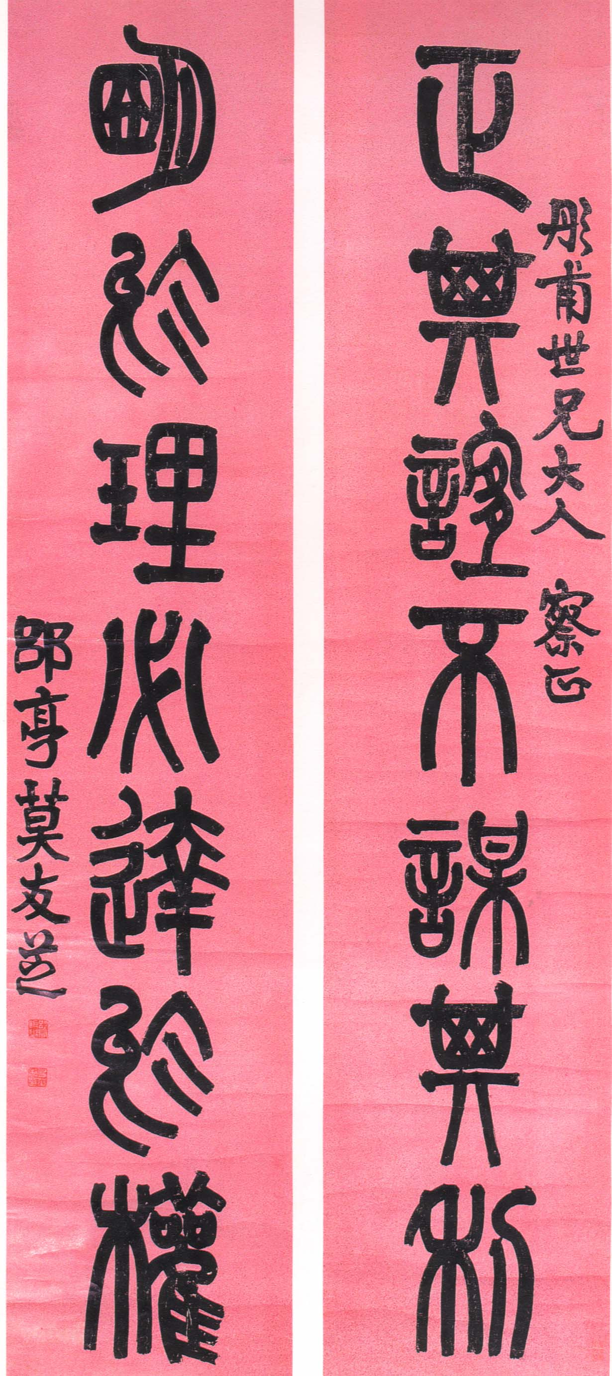 莫友芝《篆书正其明于七言联》洒金笺本篆书 203×43cm×2 上海崇源拍卖2002艺拍