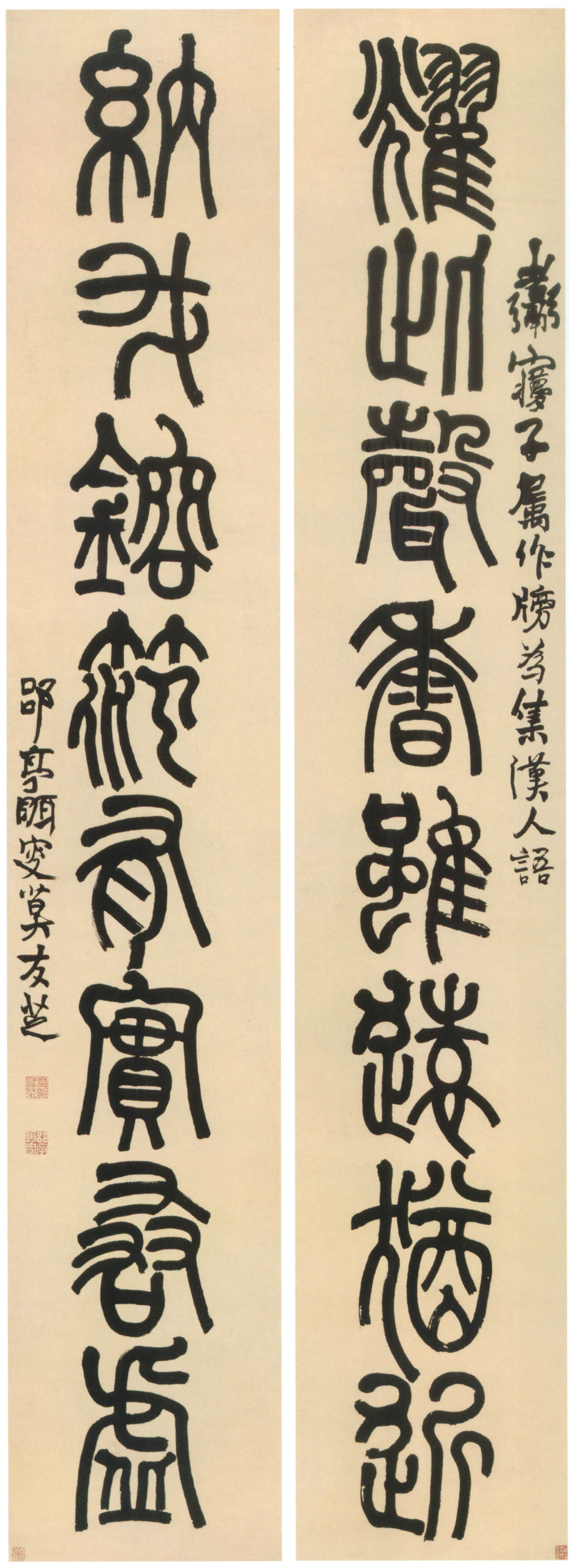 莫友芝《篆书耀此纳我八言联》 纸本篆书 184.2×32.4cm×2 北京故宫博物院藏