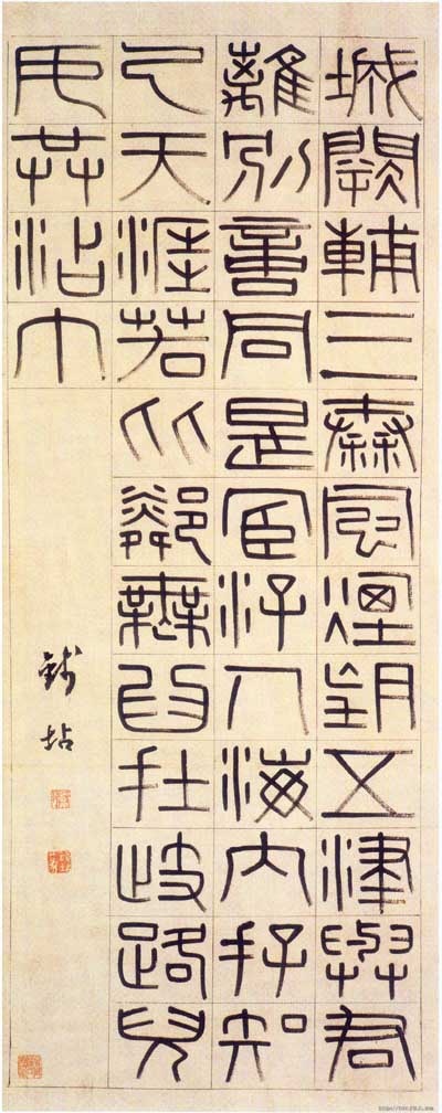 钱坫《篆书王勃五言律诗》轴 纸本 篆书 89X35.3cm 南京博物院藏扫描于《书法杂志》2004第四期