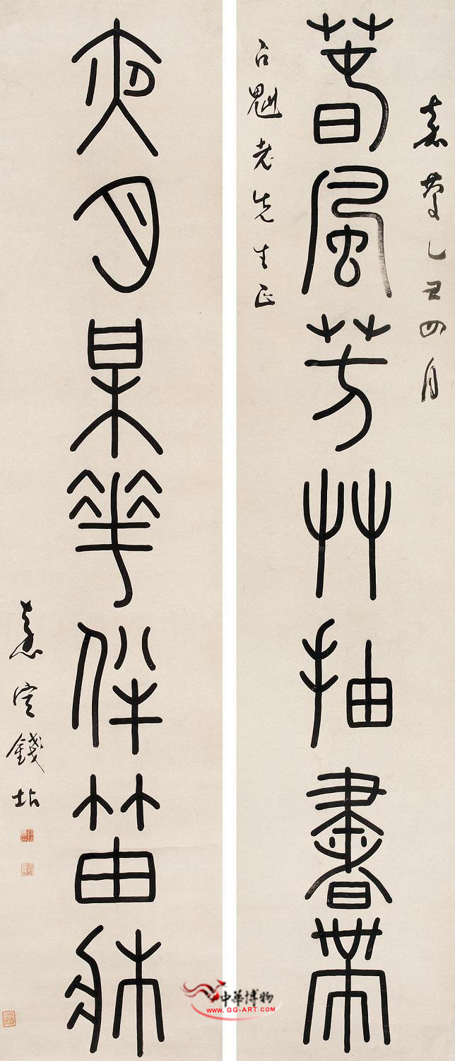 钱坫《篆书七言联》立轴 纸本 127×26.5厘米×2