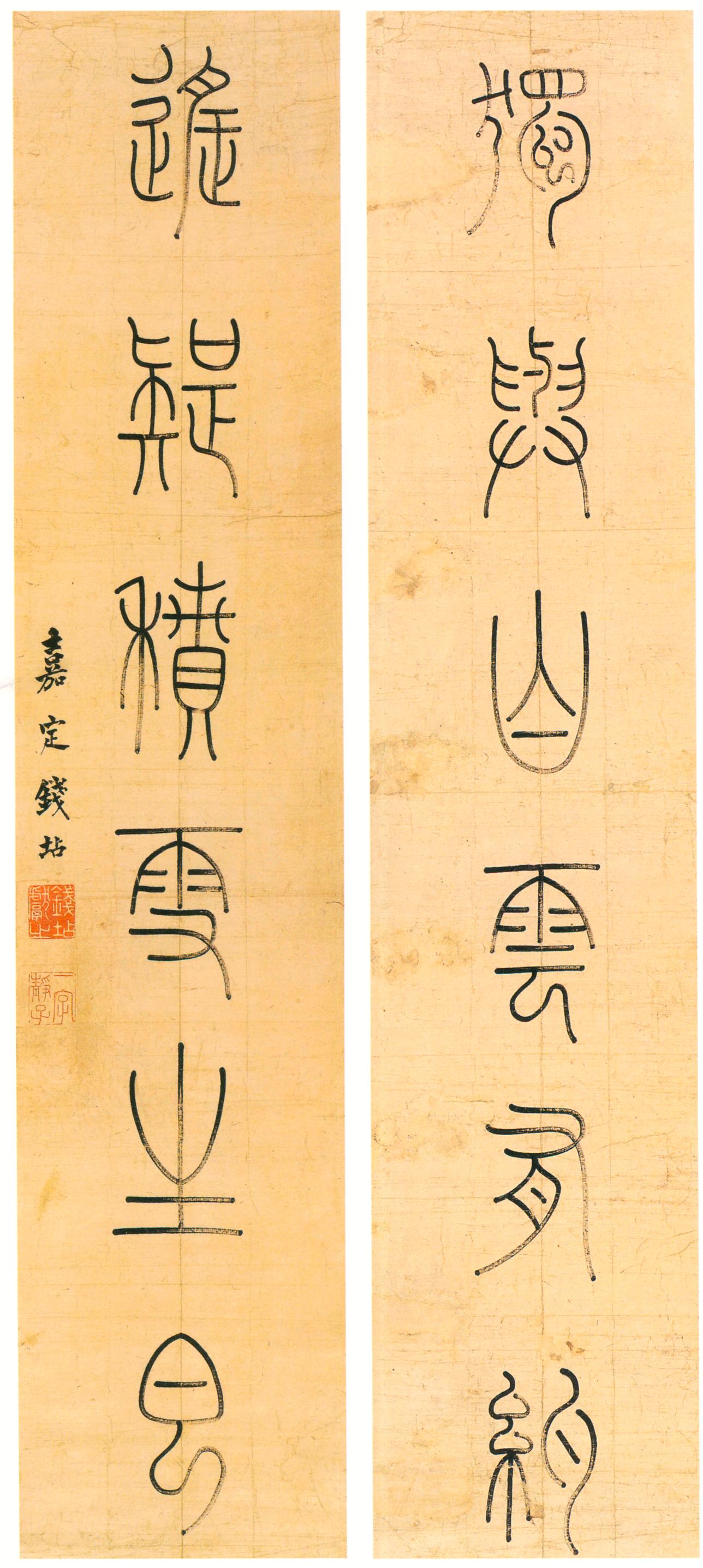 钱坫《篆书独与遥疑六言联》 115×30cm×2 嘉定博物馆藏