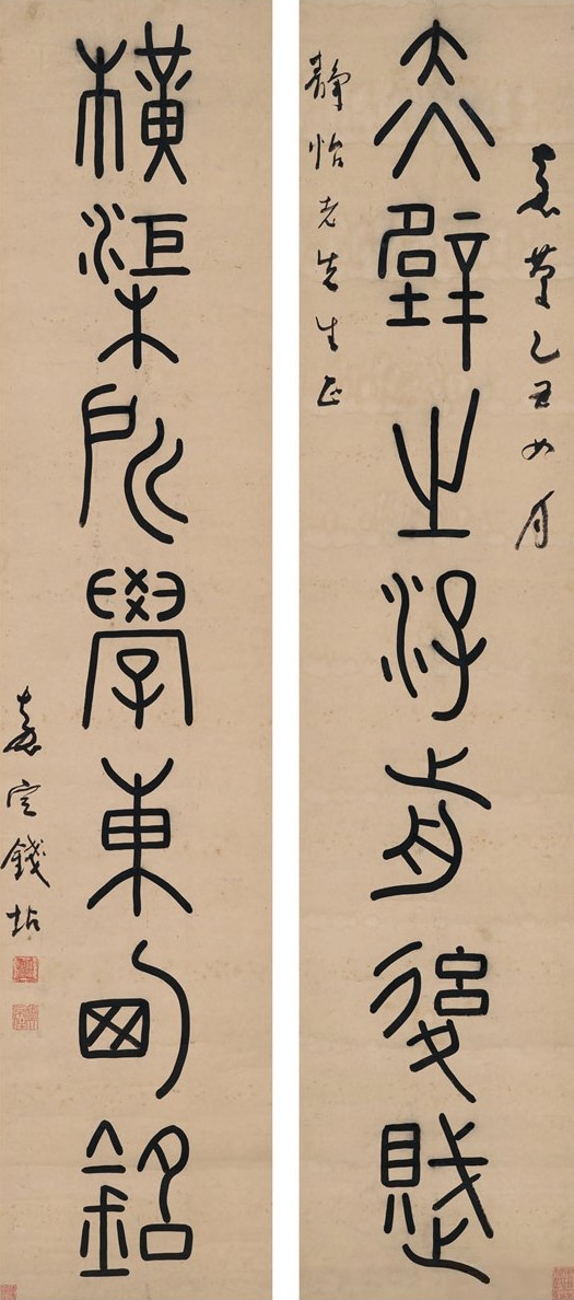 钱坫《篆书“赤壁横渠”七言联》纸本 129×27.5cm×2 1805年 西泠拍卖2014秋拍