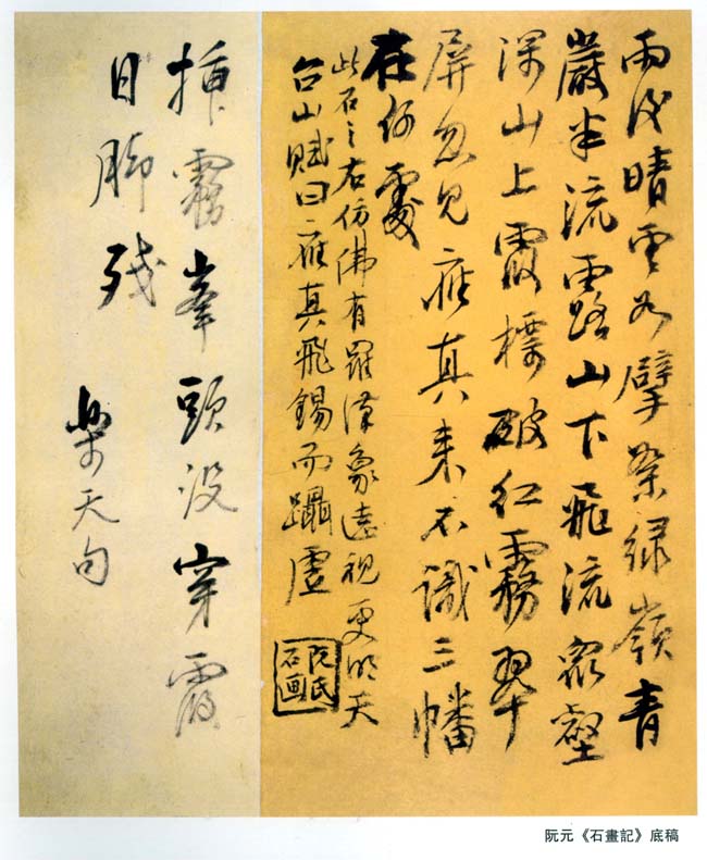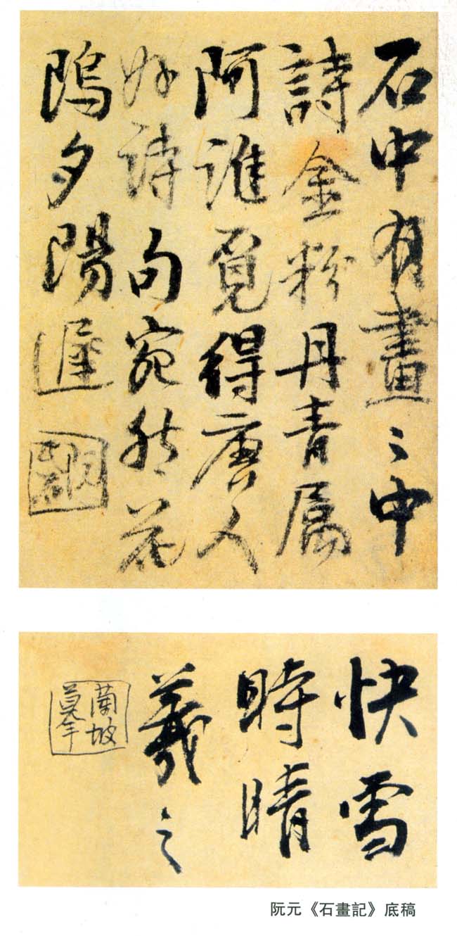 阮元工诗文、精鉴赏,善书法,亦作花鸟。阮元在任云、贵总督时,曾在许多具有天然图画的各色大理石上题识,后来曾编《石画记》一书,书有刻本传世。这里介绍的是《石画记》一书的底稿,舟斋收藏。底稿大小不一,达一百多张,大者如一页稿纸,小者仅火柴盒大小,纸张质量也是不一,可见是阮元灵感一到,随手写来。字体以行书为主,也有隶书、篆书、楷书,反映了阮元书法的多种面目。