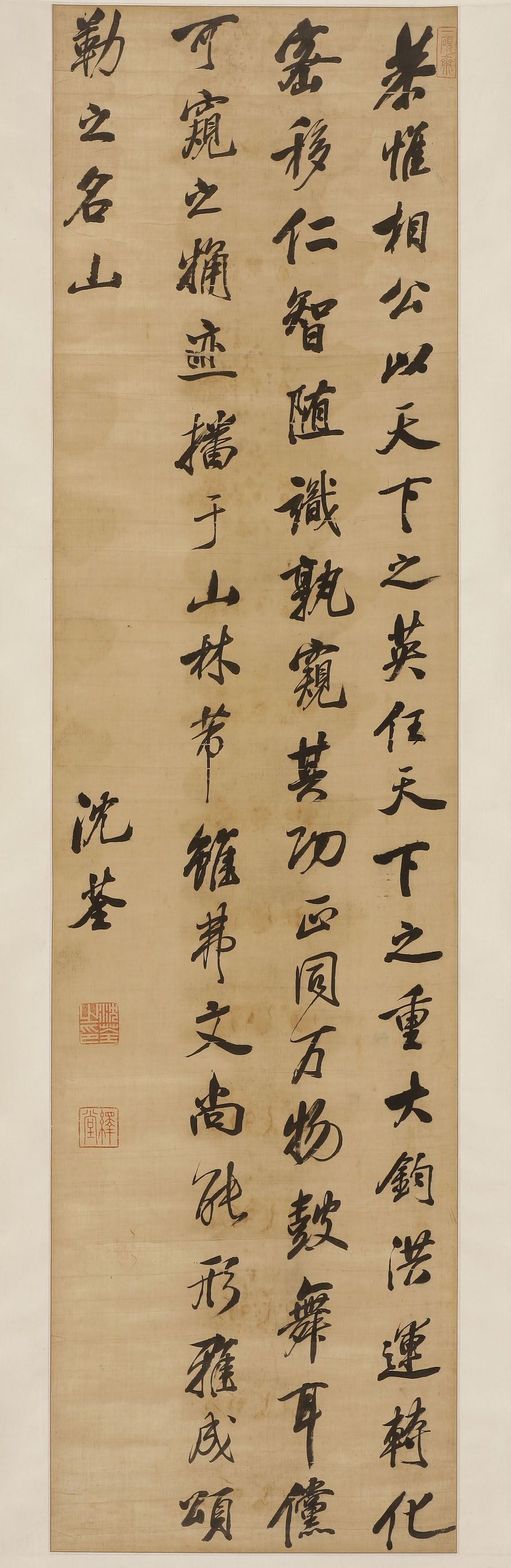 沈荃《行书临米芾山林帖轴》 186×49cm 无锡博物院藏 释文:略 款识:沈荃。 钤印:沈荃之印(白文)、绎堂(朱文)、一砚斋(朱文) 【资料来源】无锡博物院网站