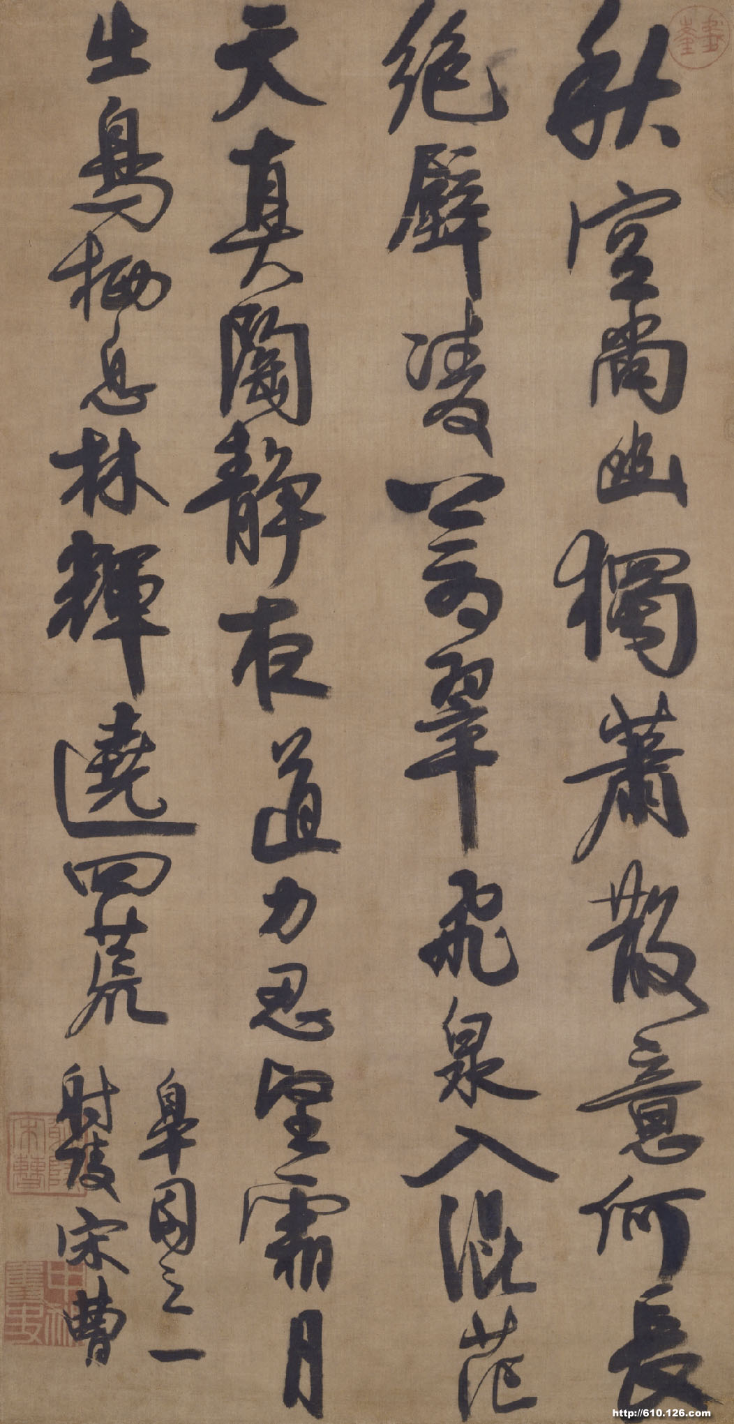 宋曹《五律诗轴》 绫本行书 84.8×44.5cm 北京故宫博物院藏